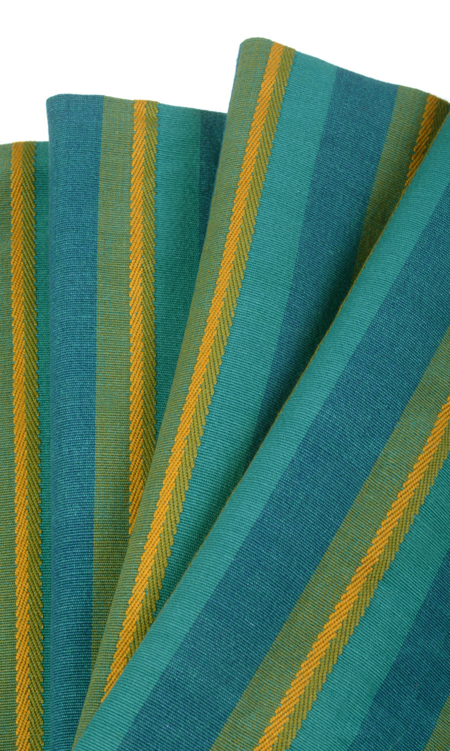 Part of our swoon-worthy cotton collection, Besong features a vertical woven stripe of mustard yellow on the most wonderful shade of blue. It is a simple yet effective design that works in many decor settings. With a raw, softly tactile feel and its body of teal and mustard, Besong feels like a modern take on cotton, so cozy and full of flavor. The medium weight cotton falls beautifully and never fails to impress - no matter what the heading style - from the fullness of pinch pleats to the minimalist look of an eyelet heading.