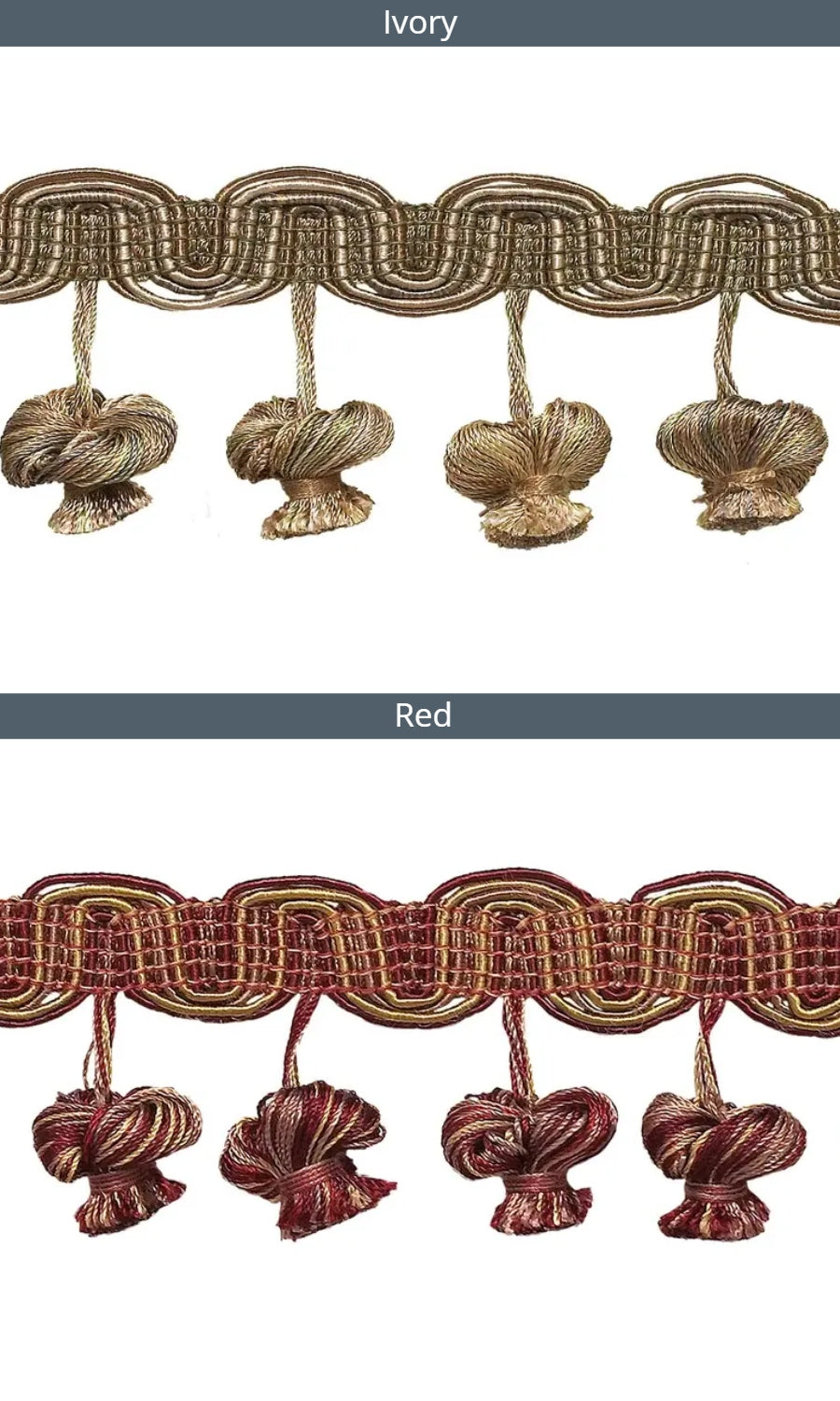 Handwoven in Turkey, each individual tassel in this trim is handtied by expert artisans, making each bobble unique. We therefore expect very minor variance between trims and tassels.