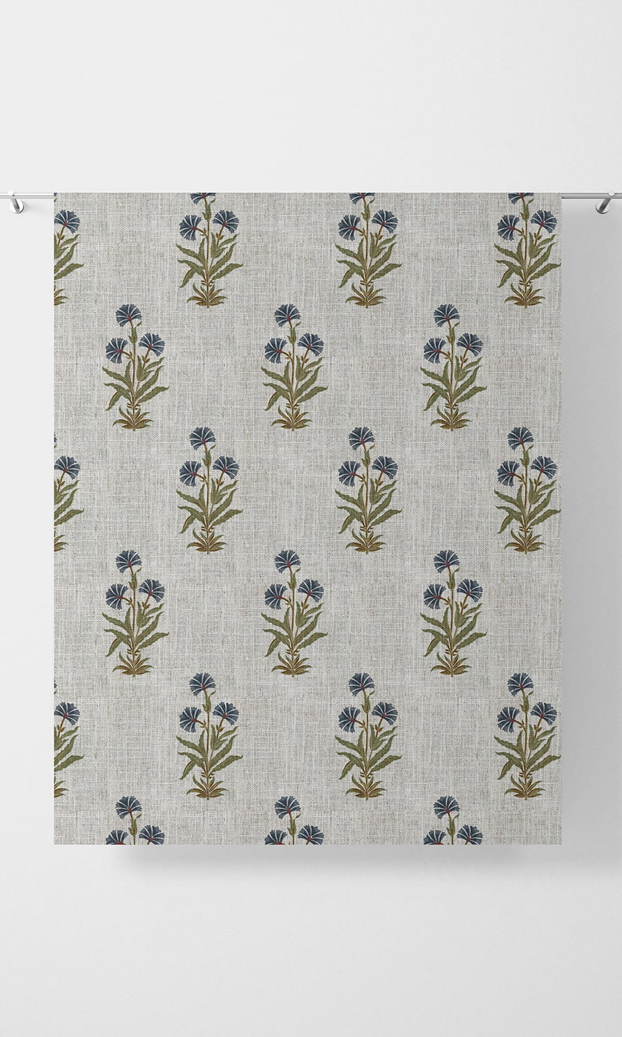 For the love of classic motifs and the sophistication of contemporary design trends, this fabric offers a delightful blend of both. A pale grey background featuring navy blue narcissus flowers with green foliage offers a visual treat without going overboard. So welcome home an ancient Mughal floral motif in this modern pared-back color palette. Welcome home our lovely Florentina!