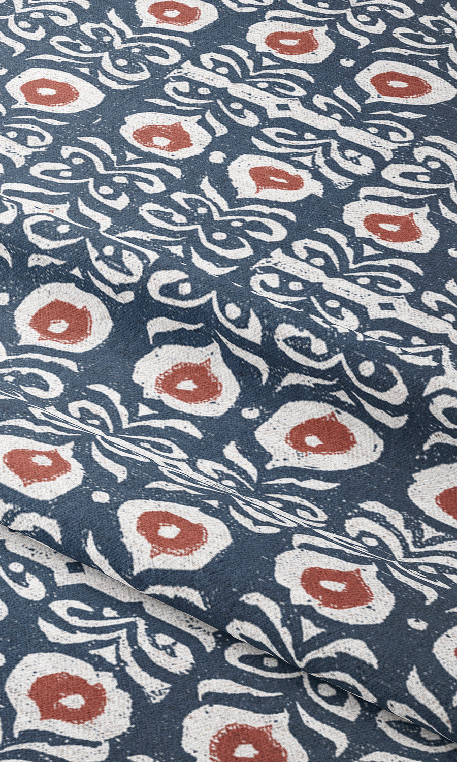 'Flowing Ink' Fabric by the Yard (Deep Blue/ Red)
