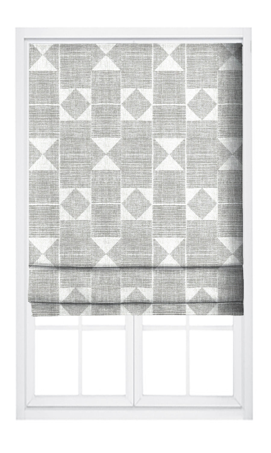 - Pair with plain panels: Frame French Grey roman shades with plain, solid-hued curtains to anchor the pattern while creating a cohesive color story. Layering adds depth and detail to the design, besides enhancing light control and insulation.