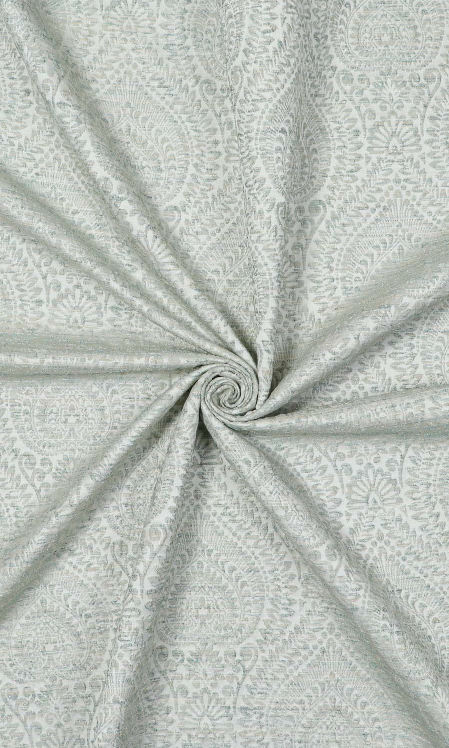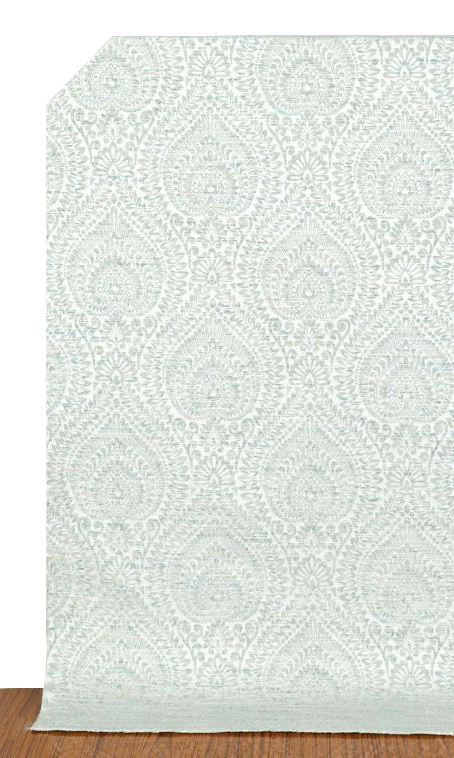 A damask-inspired heavily detailed pattern takes a quiet turn by expressing itself in raised textures and neutral hues. Fresh Aqua is a timeless asset to any decor style as it can forward the quietness of modern homes as well as the embellishments of traditional settings, and mingle with any palette under the sun.