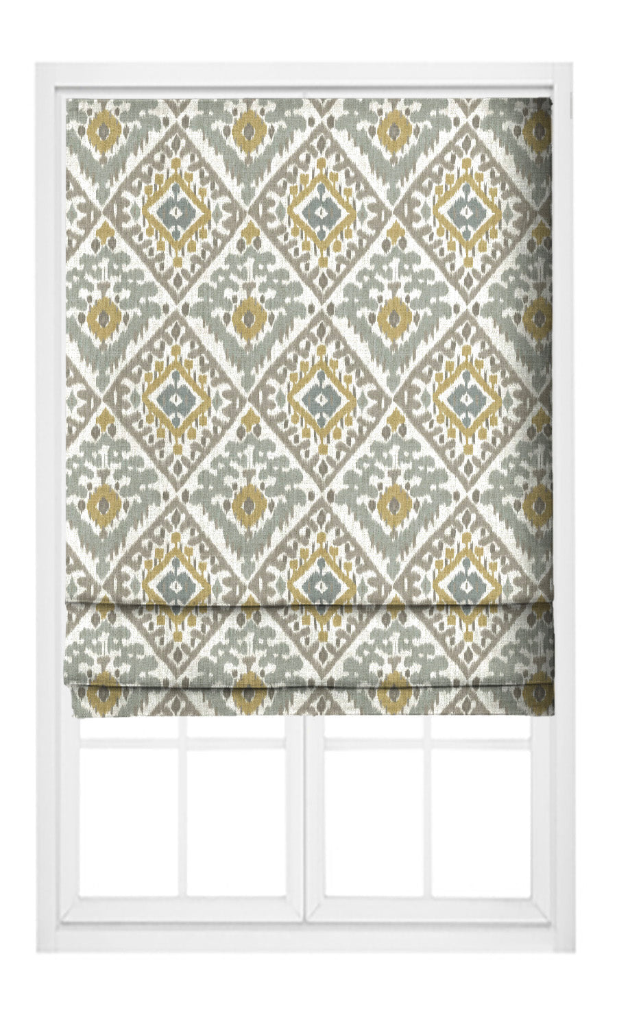 - Edge the shade with trims: Adorn these ikat roman shades with handmade trims to enhance their bohemian look. Consider pompom, tassel, and fringe trims that add a decorative layer befitting of the ornate pattern.