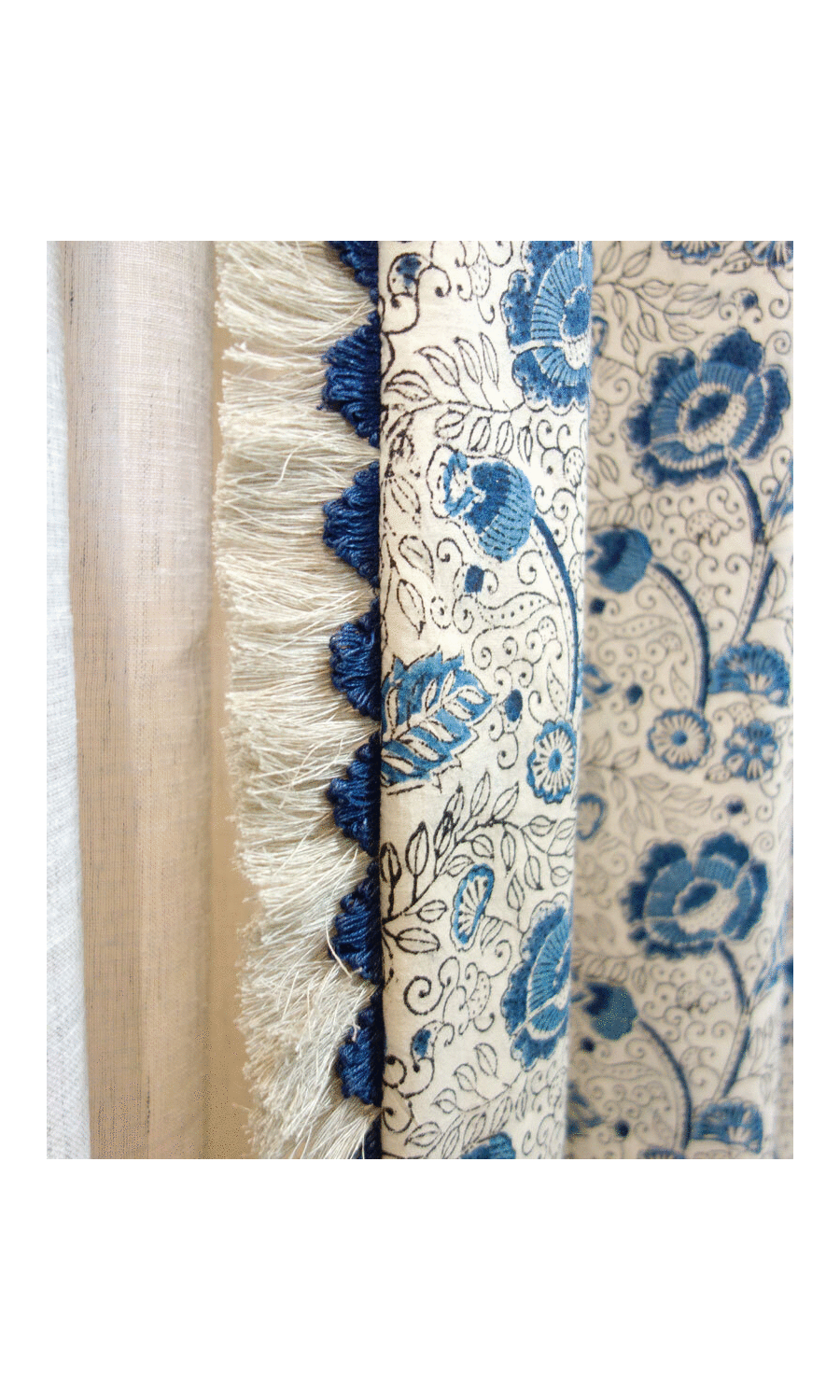 This 30mm cotton fringe has a rustic and natural feel, and is handsewn on the bottom hem of curtains for a delightful effect.