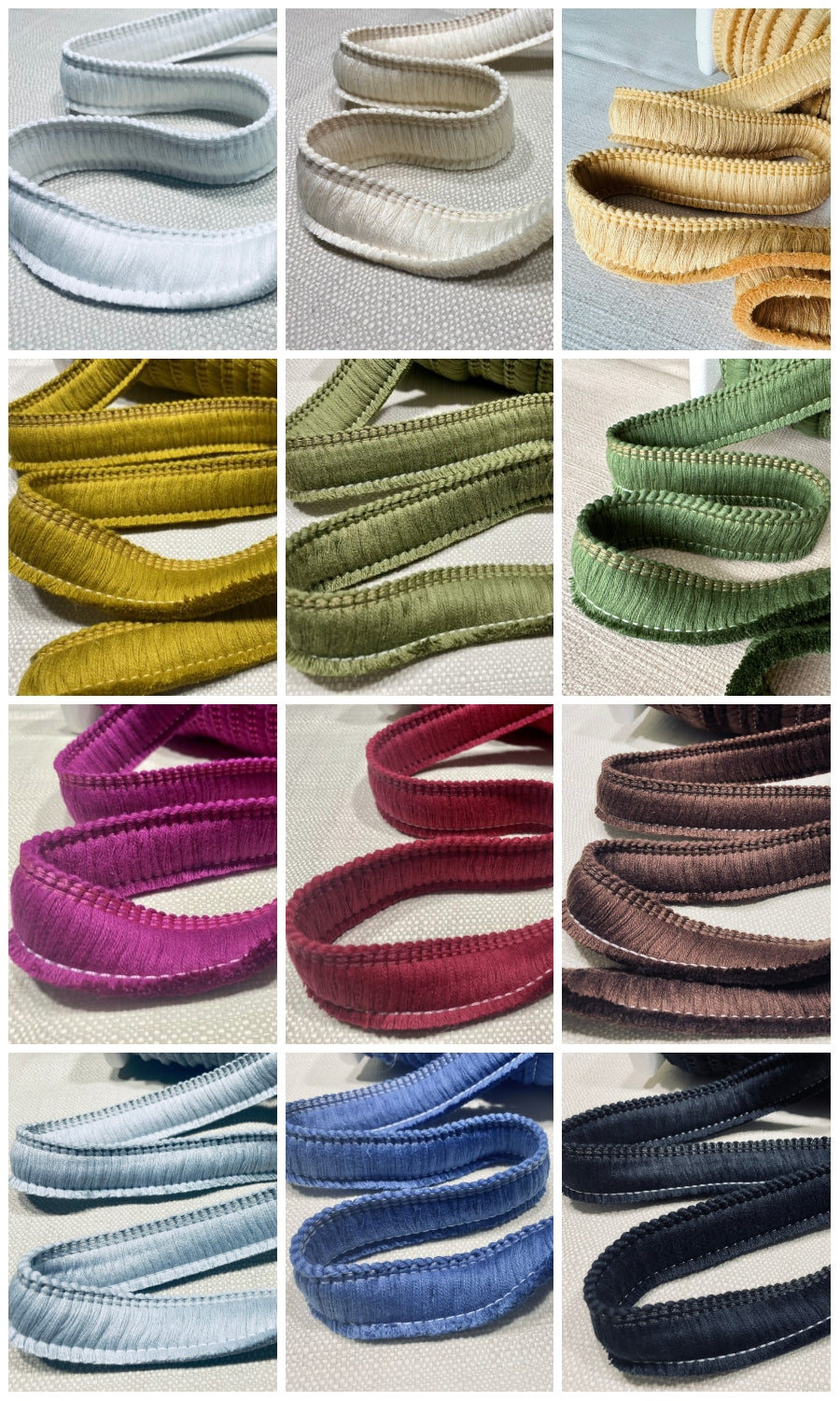 Dress up your curtains with these full and thick, cotton brush fringe trims. This fashionable trim is available in 20 colorways - giving options for every space and palette.