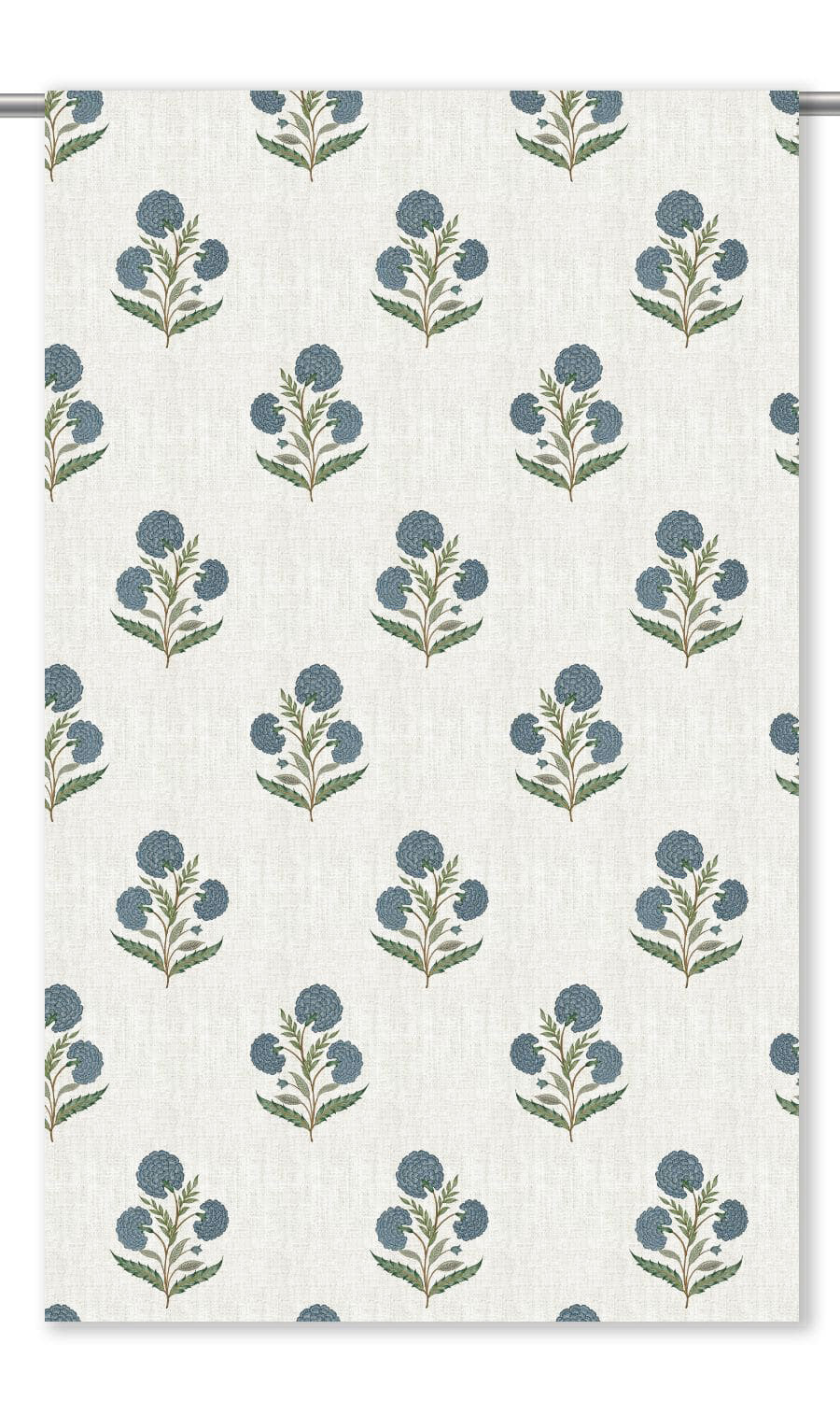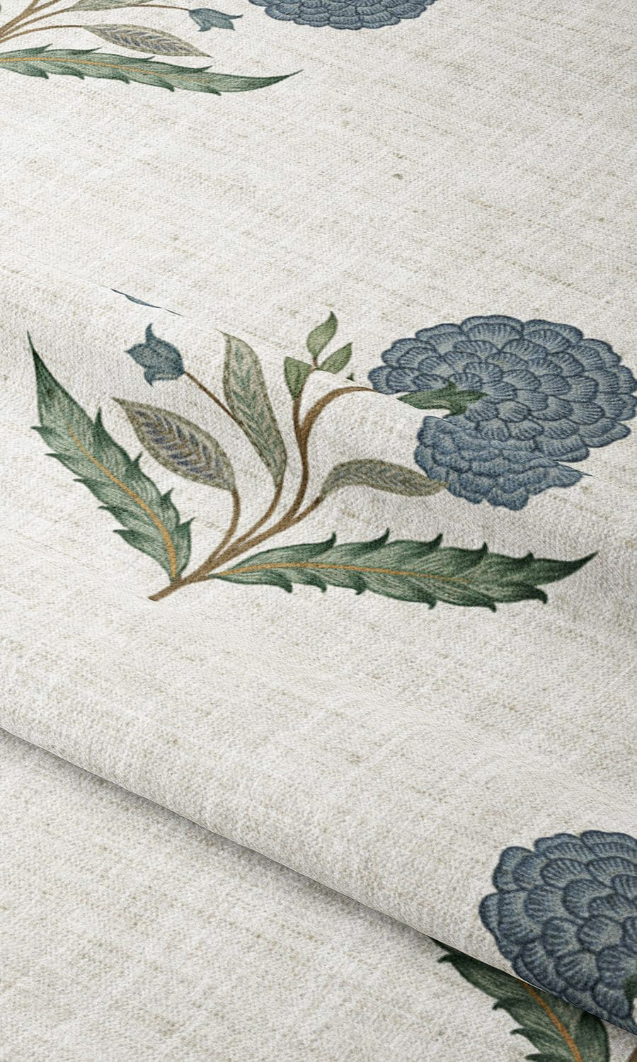 • Deep blue and green unfurl on linen-textured cream, bringing cozy cottage warmth to every sunlit window