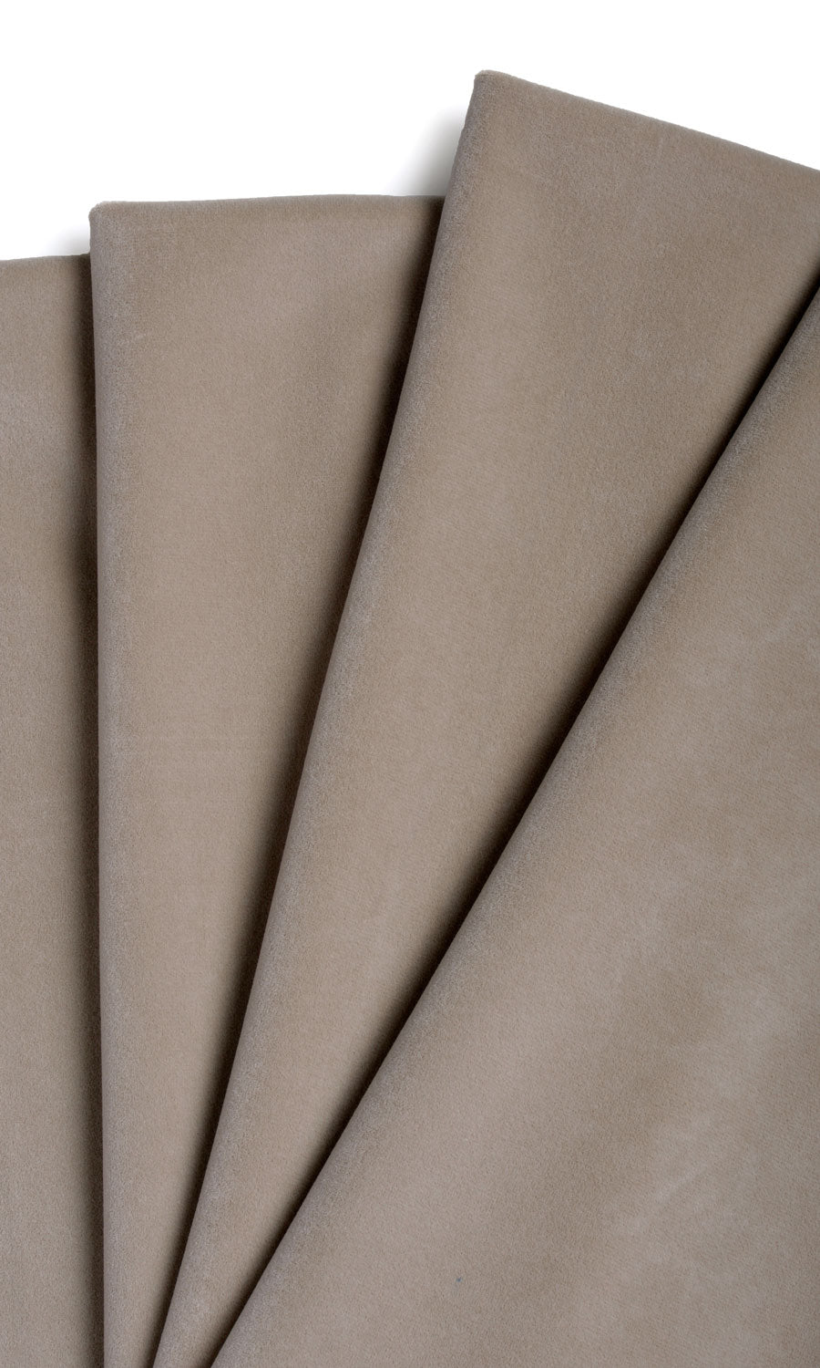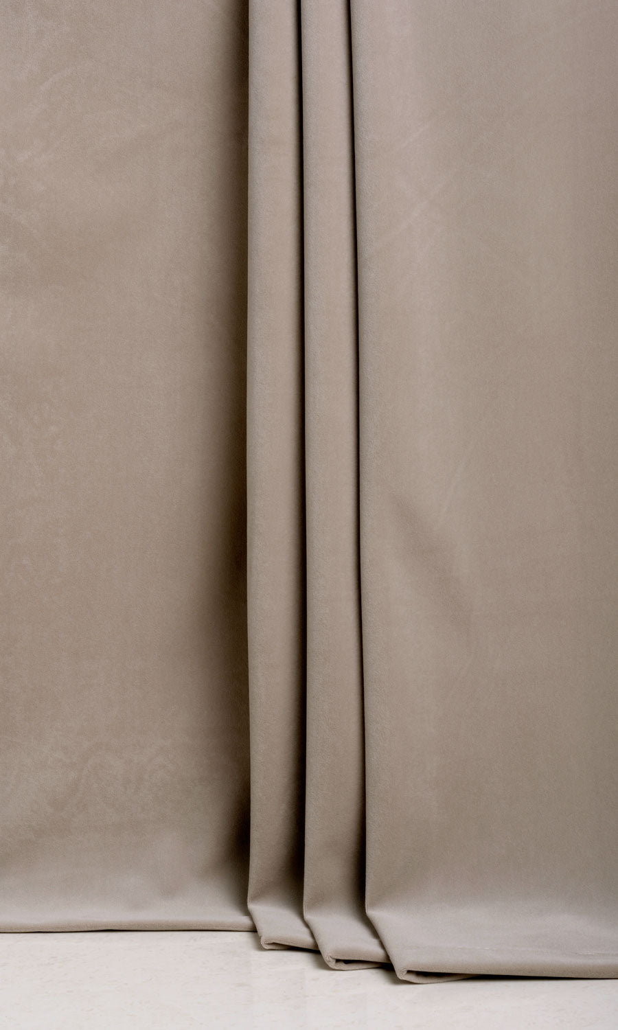 Give an organic vibe to your home with window treatments in this taupe velvet. With immense versatility to blend with many hues, brown curtains and roman shades present a great opportunity for room styling. Dense naps translate light to various versions of taupe, inviting touch to experience the tactility of this plush fabric. Our stylists recommend sewing this monochrome lovely in architectural styles such as pinch pleated drapes and relaxed roman shades.