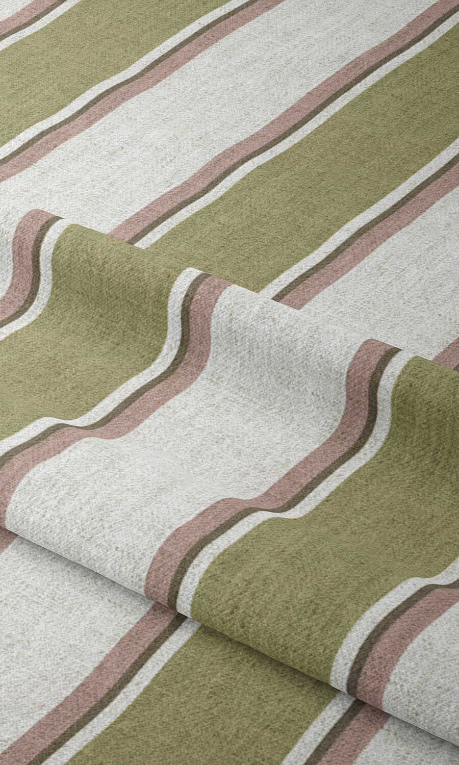 Designed with classic regency stripes in an appealing color scheme of olive green, mauve pink and white, this fabric breathes simplicity and country vibes. The attention-raking scale of the pattern is supplemented by an impressively attractive palette. Elongate your space with elegant drapes and shades in this vertical striped fabric which can easily blend with any decor style.