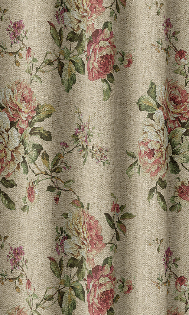 A fabric that makes you hold your breath for a second! Bring the feel of a flower-scented garden to your home with window treatments featuring elegant posies of blush roses. The traditional motif spells vintage delight with a warm country vibe, and the trend-right color palette renders a modern sophisticated touch. The biscotti beige background and the grand sizing enable the fabric to find its suitability in both traditional and contemporary spaces.