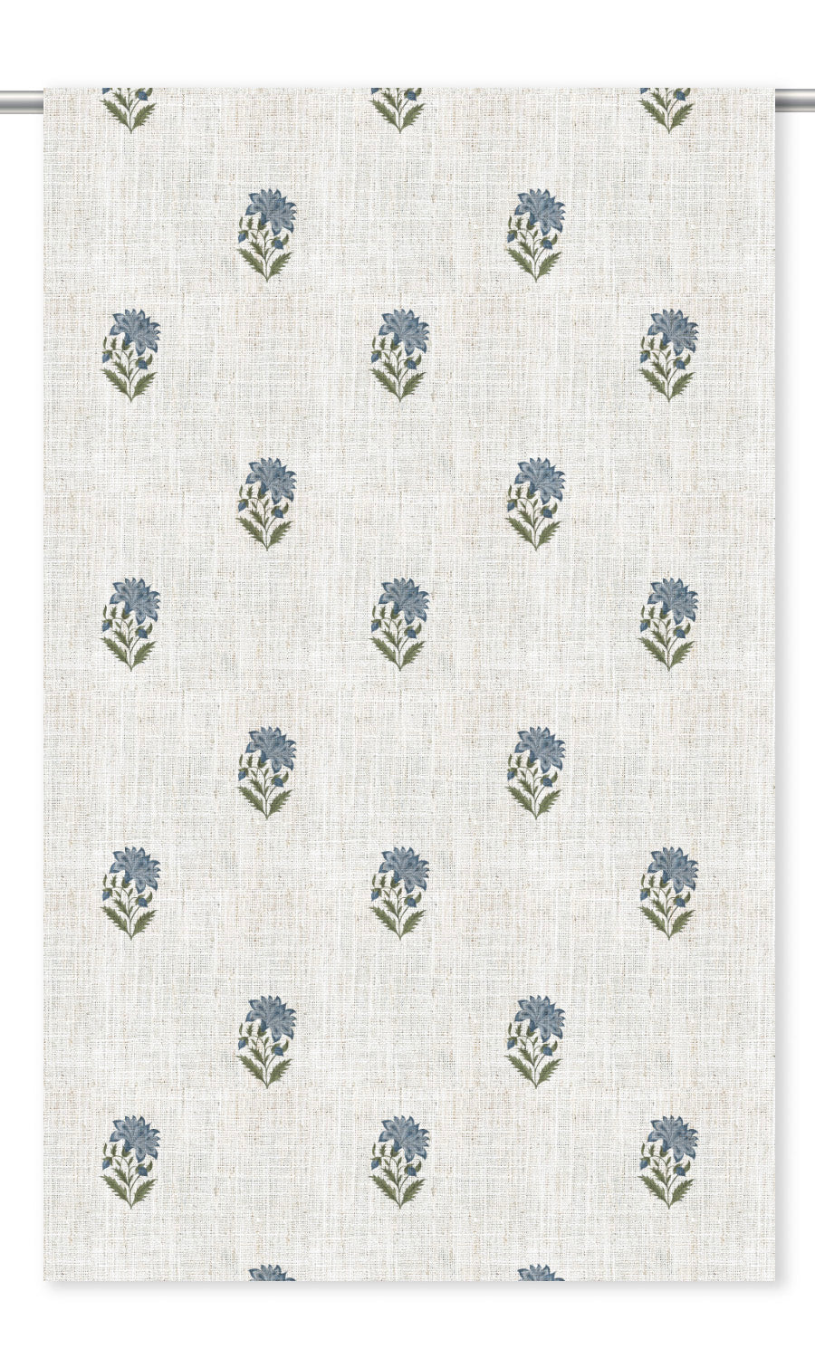 'Glory Flower' Fabric Sample (Cream/ Stone Blue)