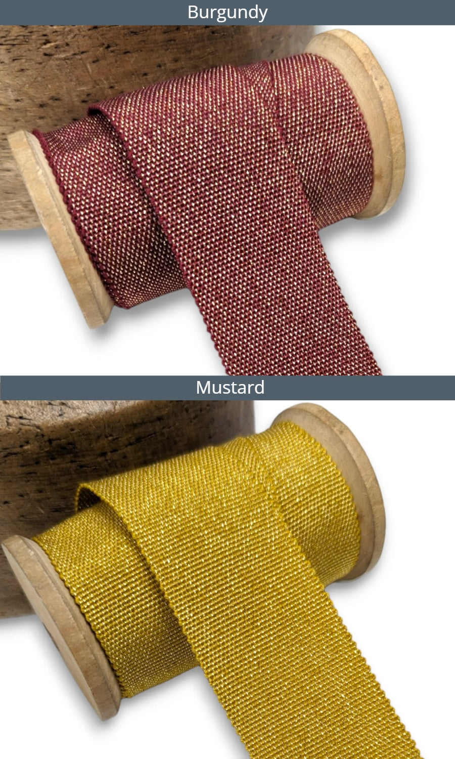 This 35mm milliners Petersham ribbon has been woven with a lurex thread that provides just a touch of glimmer under the light. Dress up your roman shades with our gold metallic ribbon trims. Available in 6 elegant colors, this ribbon is all you need to jazz up even the most basic of roman shades. Add it to a minimalist white linen shade, or a maximalist print fabric, there is no going wrong with these!