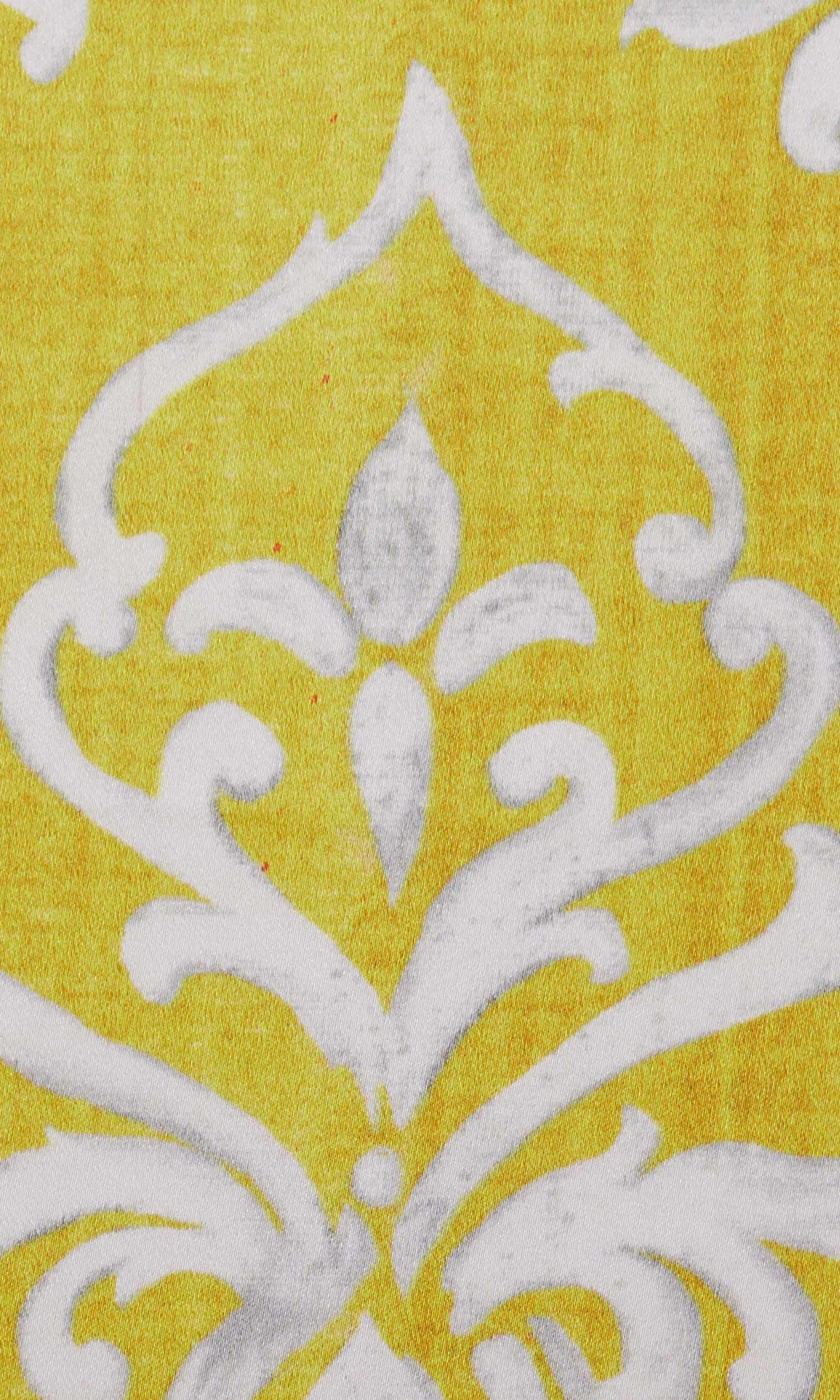 This lavish fabric features a beautiful baroque trellis motif reverse printed in white on a tonal golden yellow backdrop. This luxurious fabric is a visual masterpiece that will look perfectly at home in any distinguished interior enriched with classical decor!