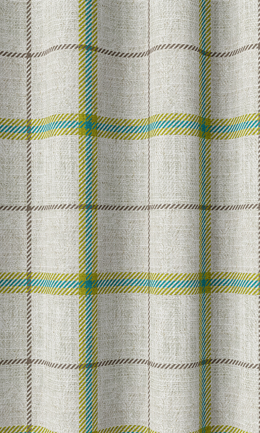 Featuring a big-block plaid pattern of apple green and blue on a crisp linen white - hues that lend a contemporary twist to the otherwise traditional pattern. Whether you're fashioning a mid-century modern living room or a contemporary-chic dining space, you can use this vivacious fabric for drapes and shades that never fail to impress.
