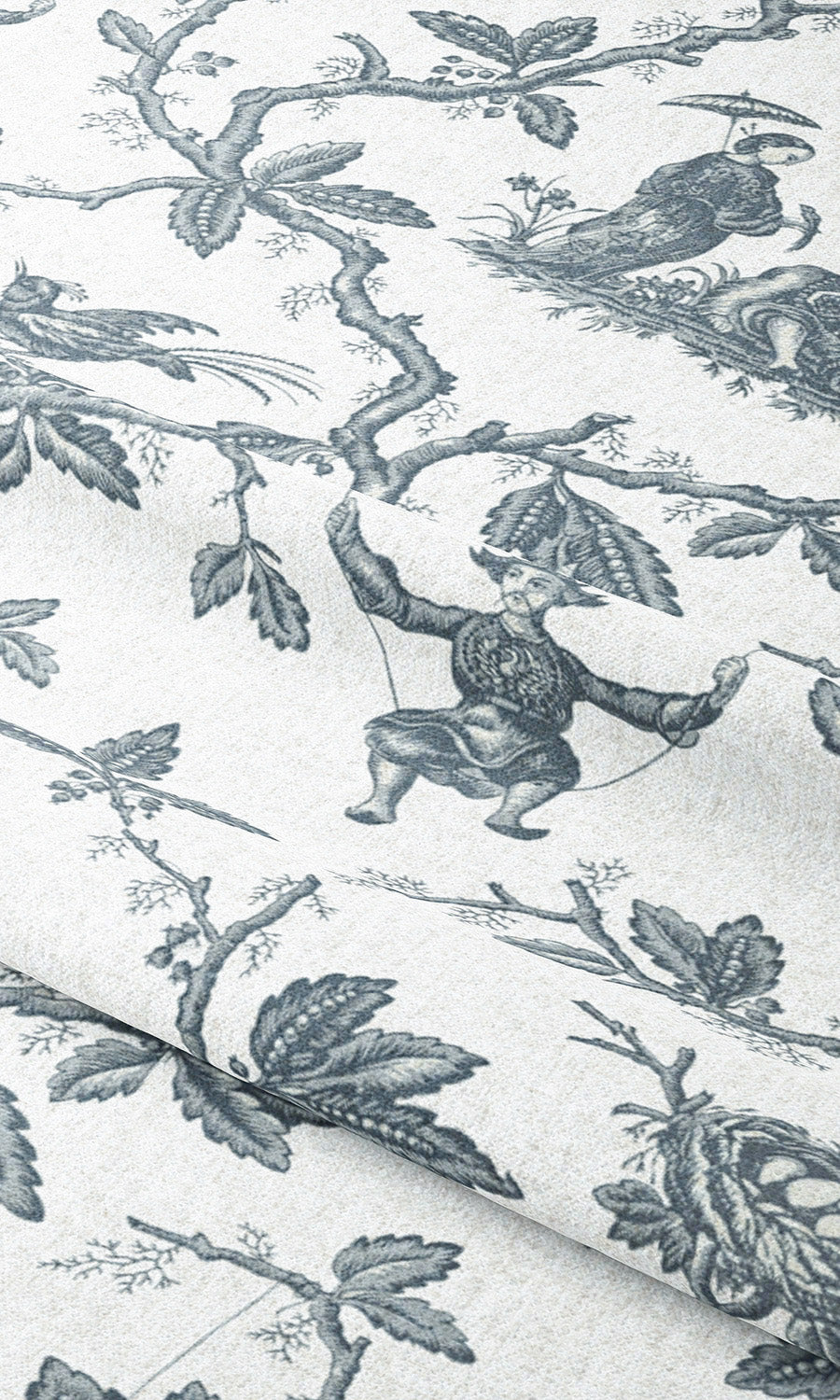 - Its classsical botanical toile print, where countryside vignettes tucked between floral trails and nesting birds evoke nostalgia
