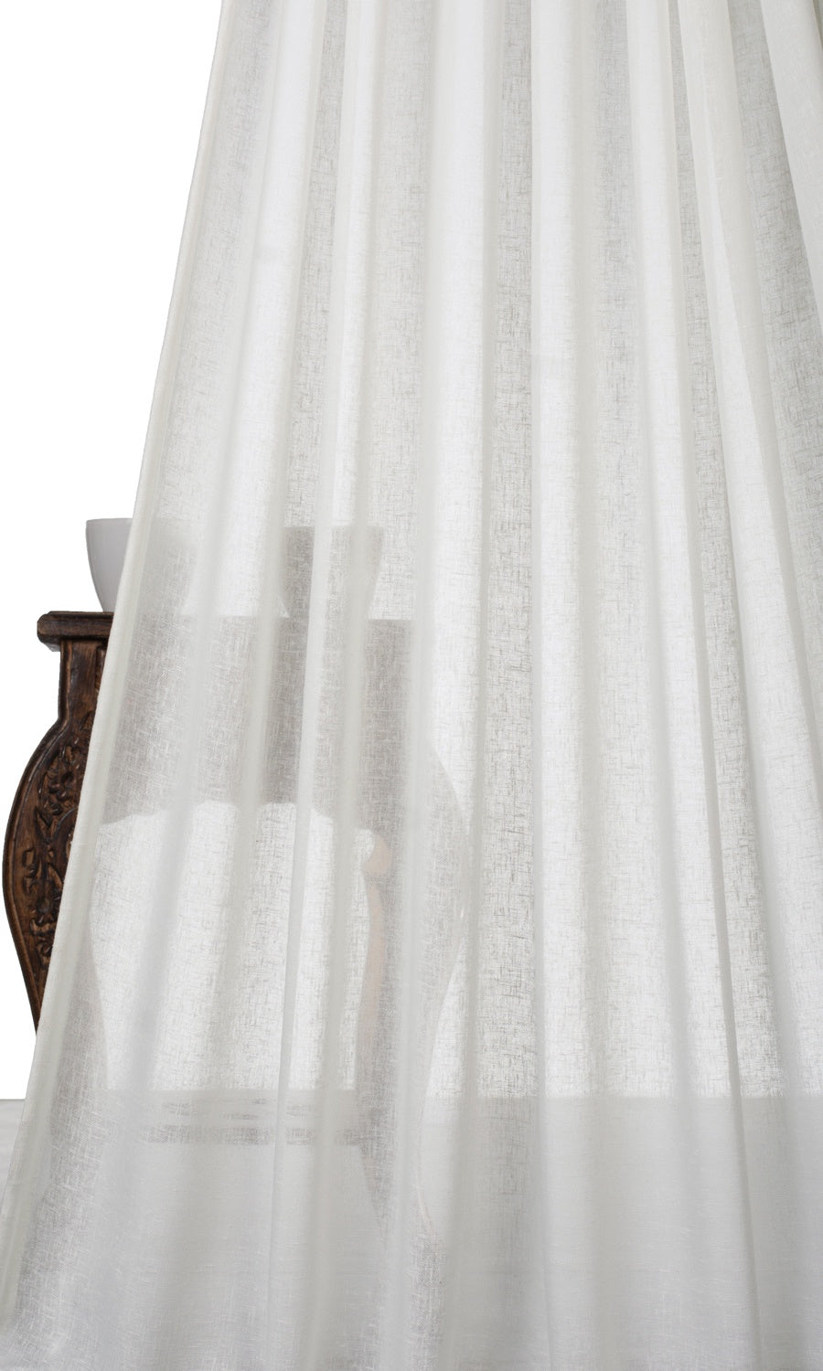 A plain white sheer that transforms simplicity into pure sophistication, wrapping your space in soft, luminous beauty. This gauzy fabric filters light with a gentle touch, creating a serene, airy atmosphere that feels effortlessly elegant. Welcome light and ensure daytime privacy with this ethereal veil for your windows. 'Good Grace' is nothing short of a true celebration, a statement of timeless style, delicate texture, and a whisper of grace for your home.