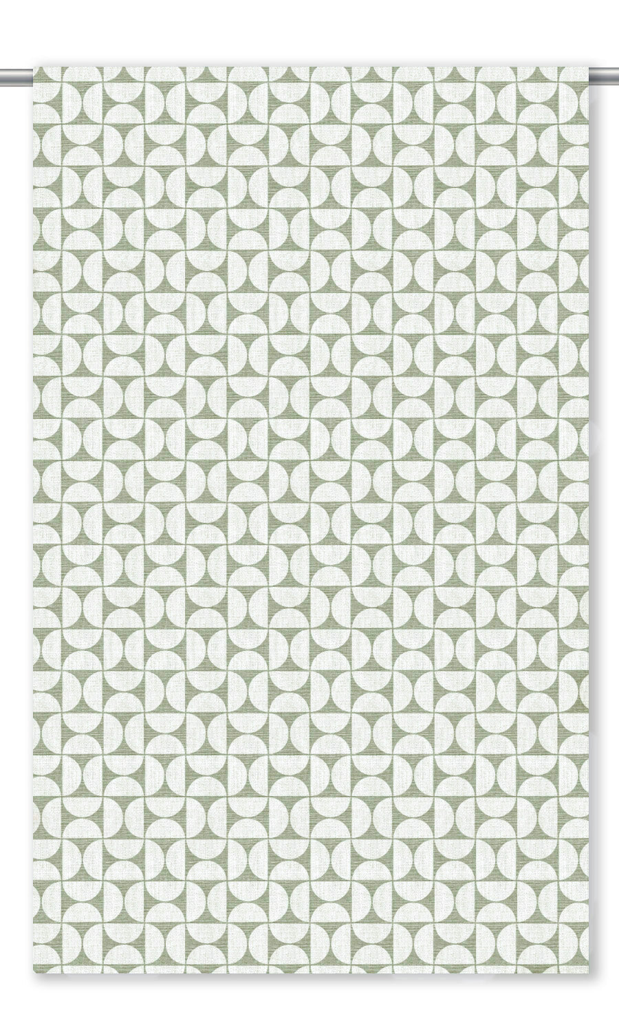 - Opt for a modern heading style: Select a sleek heading style that rhymes with the contemporary edge of this geometric print drapery. Think grommet tops, back tab tops or flat panel tops that feature simple, uncluttered silhouettes perfect for minimalist homes and offer the clean canvas on which the refined pattern can command the spotlight.