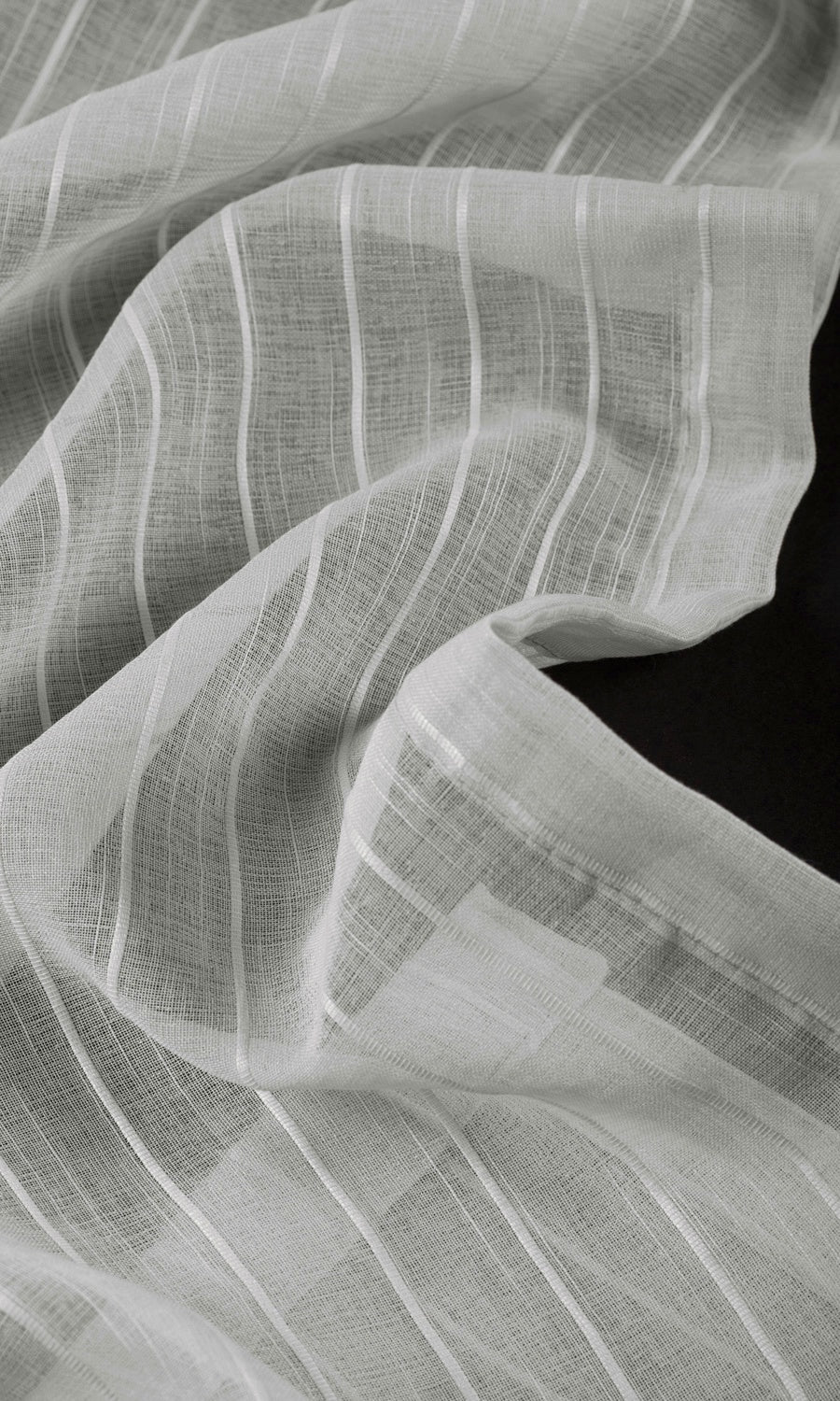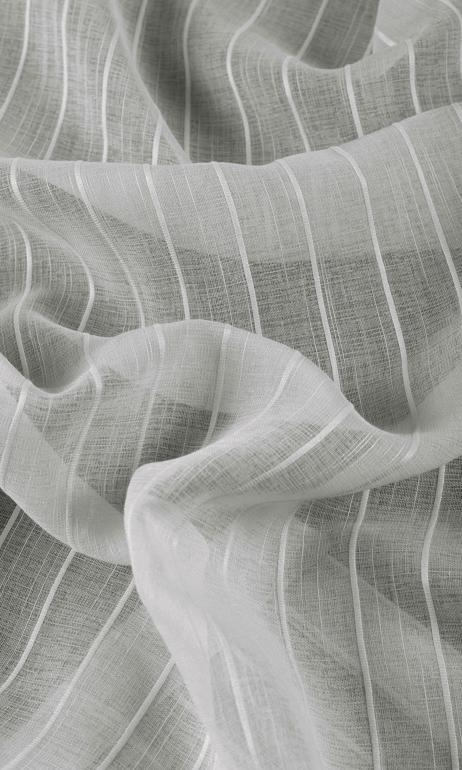 A grey sheer with sleek decorative stripes for a minimalist home that appreciates a bit of detail. So, you can not only enjoy bright daylight and fresh air but also an aesthetic moment in your decor while staying well within a restrained palette. Count on the neutrality of gray to blend with any palette and decor style.