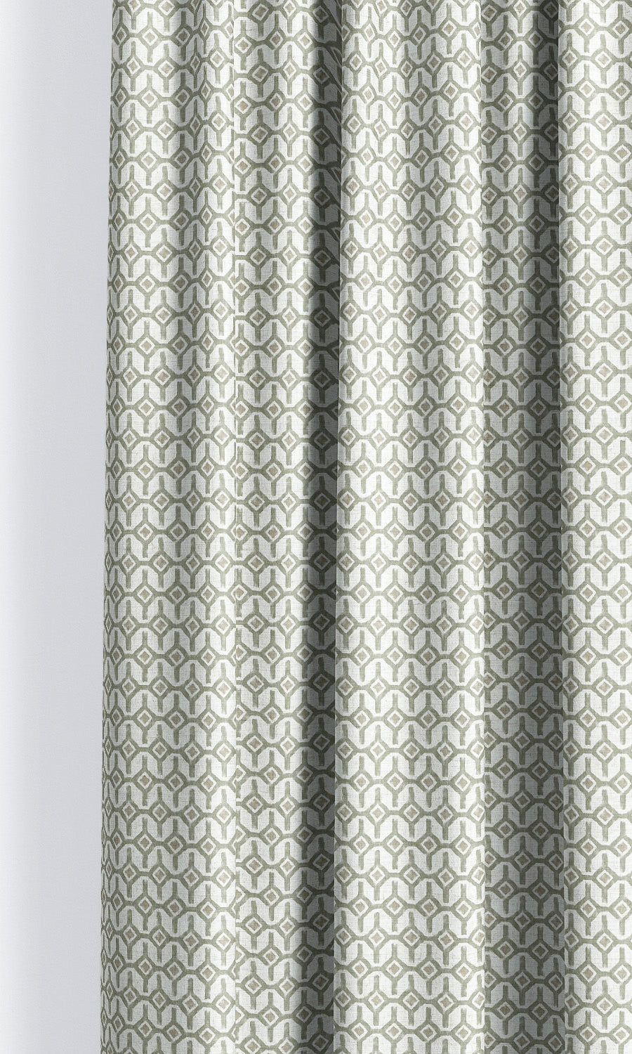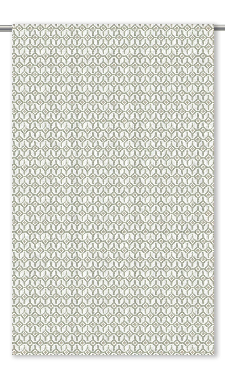 - Crown with a plain valance: Layer these roman shades with a plain sage green valance to ground their intricate trellis pattern. This interplay of solids and prints brings depth and interest to the arrangement, and makes it feel more tailored and considered.