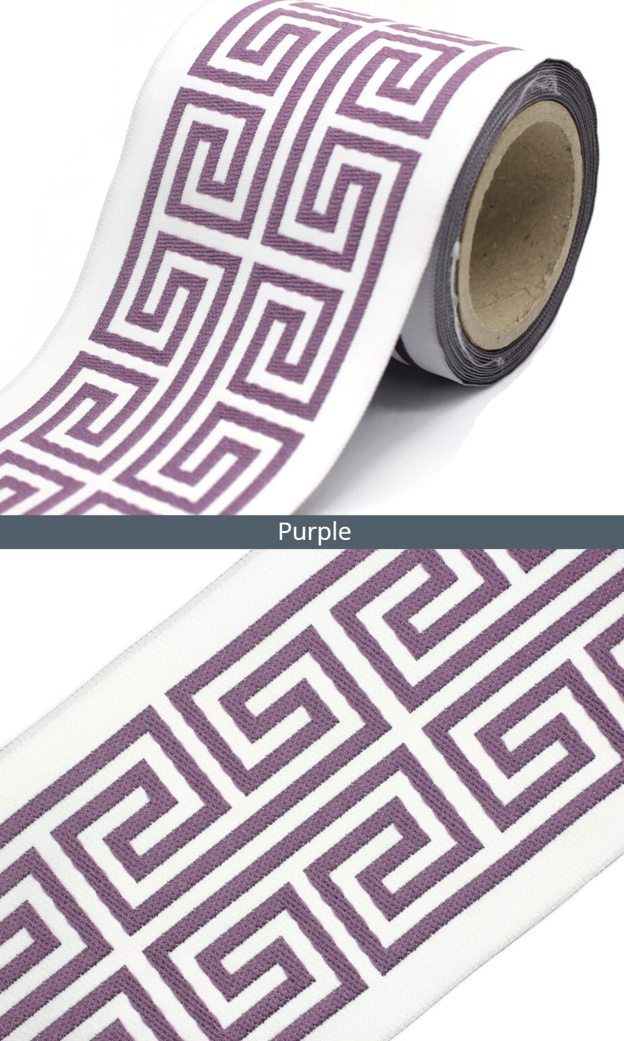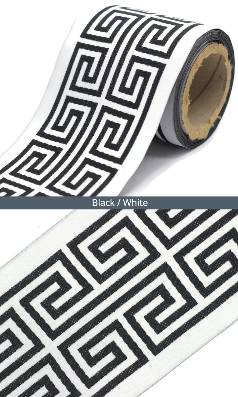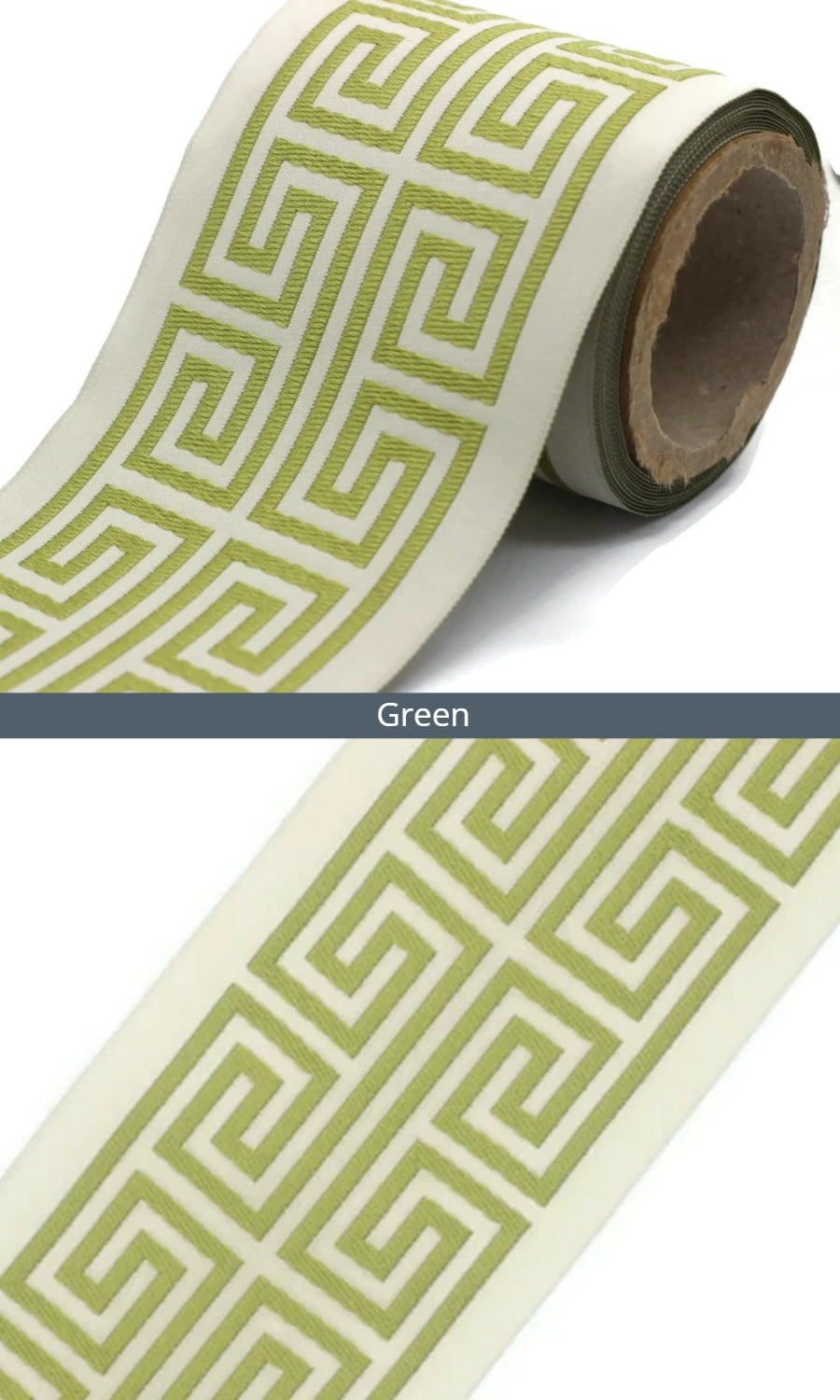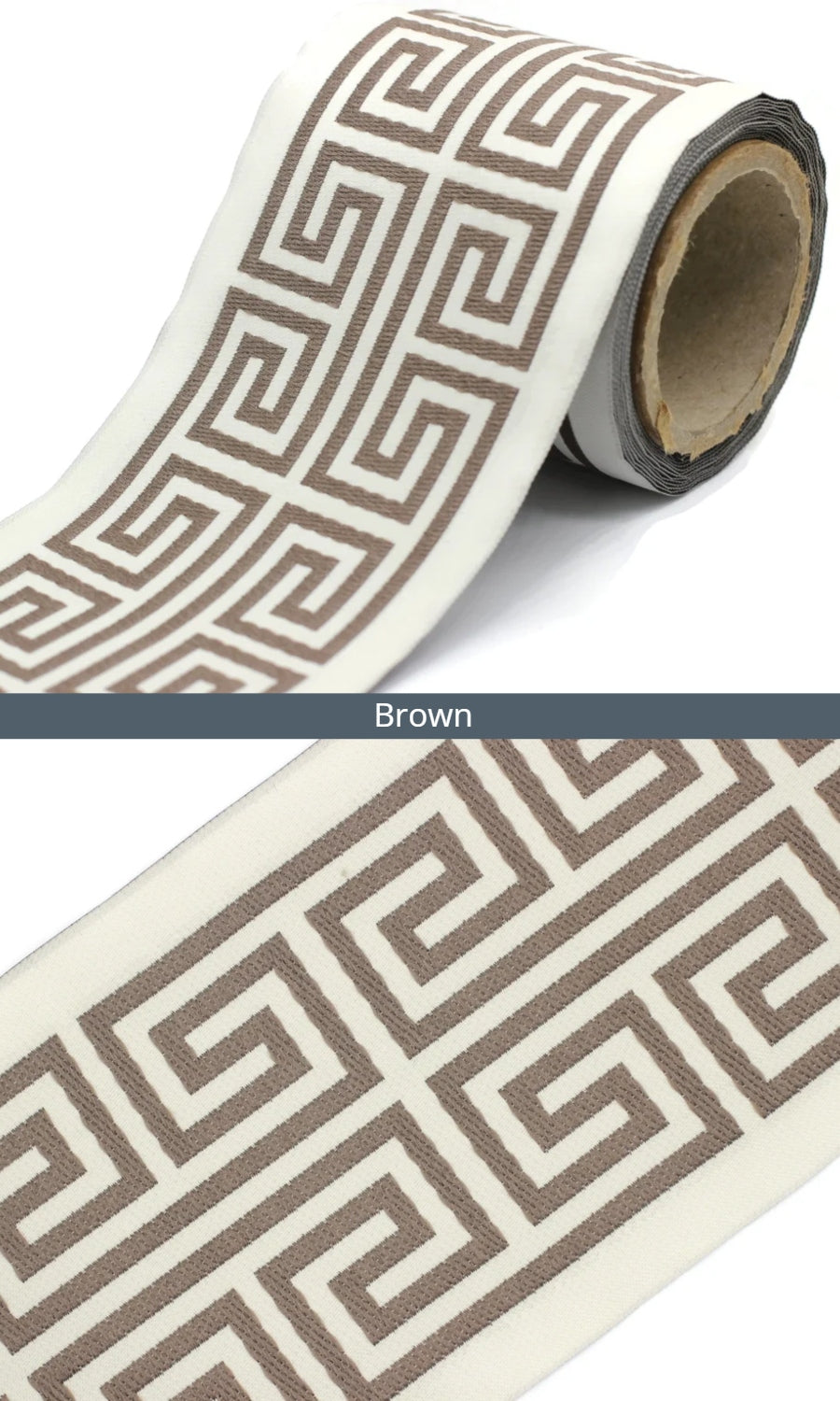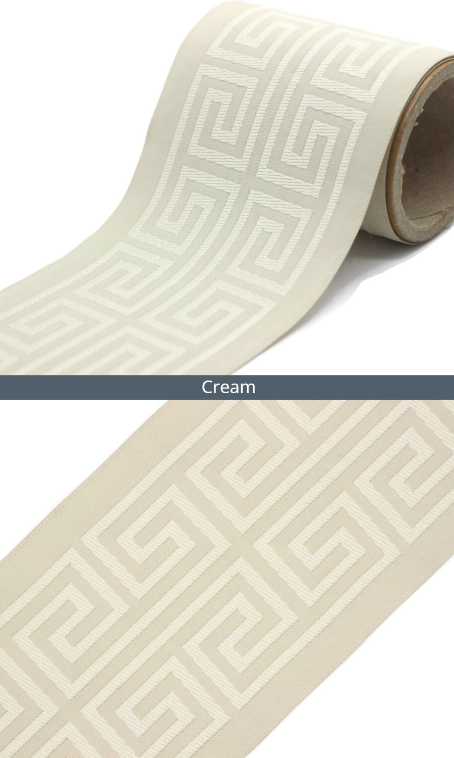 Dress up your custom curtains with an elegant ribbon trim from our 'Greek Key' collection of embroidered jacquard trims.