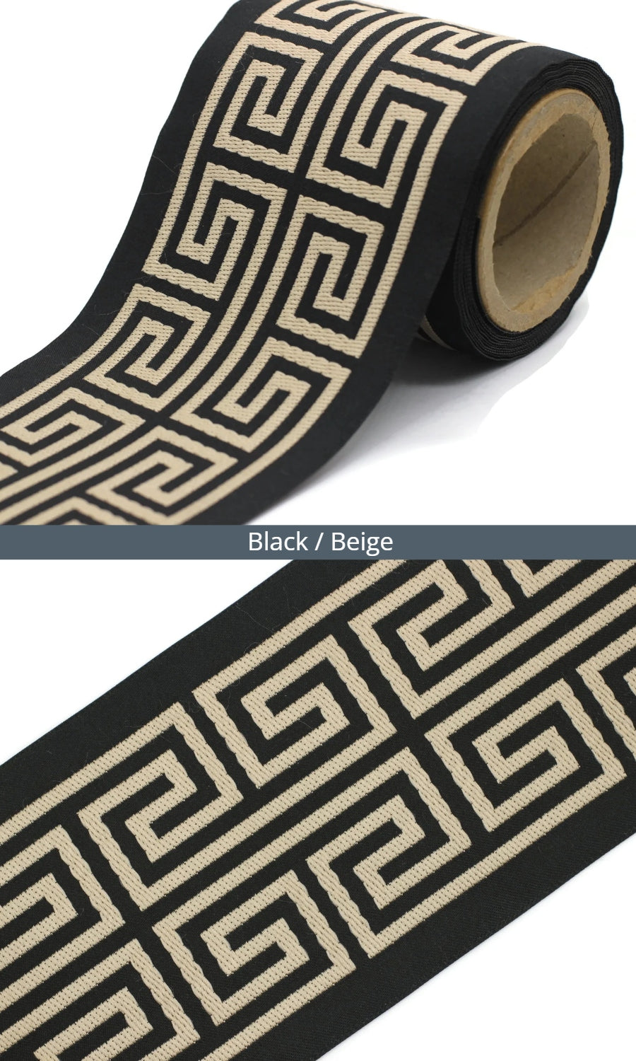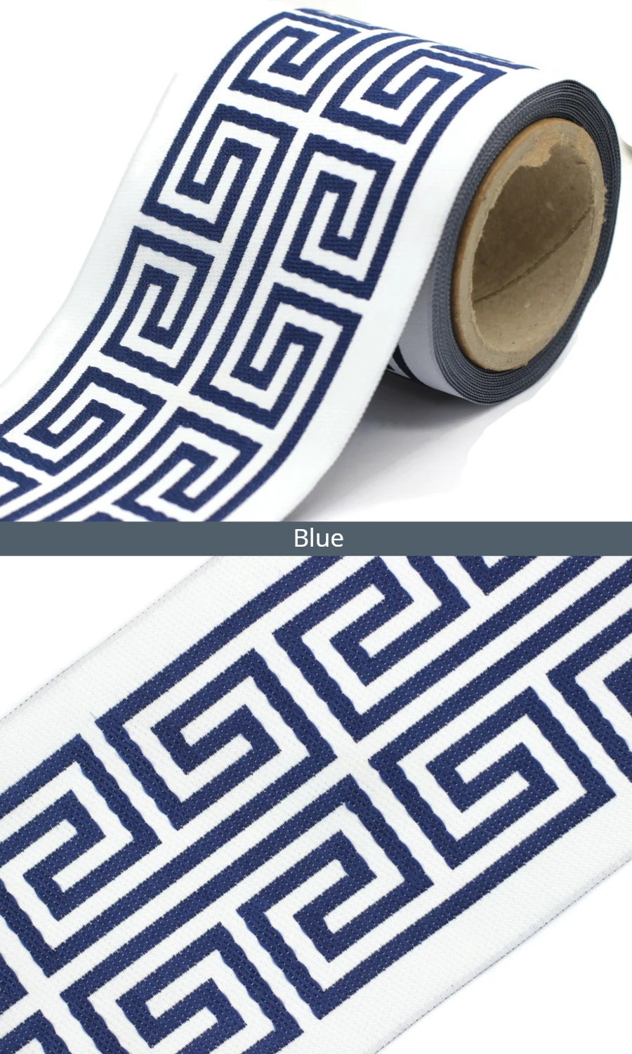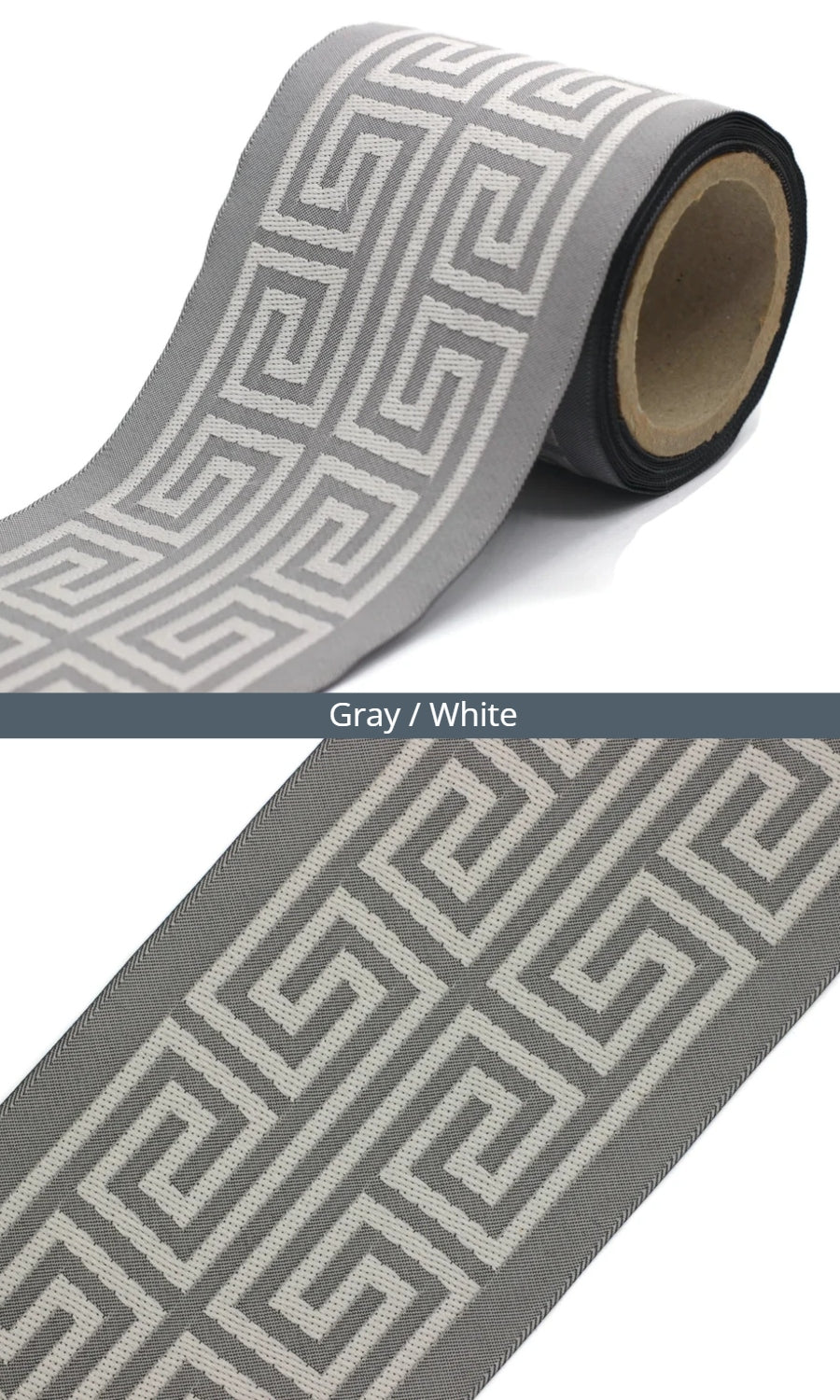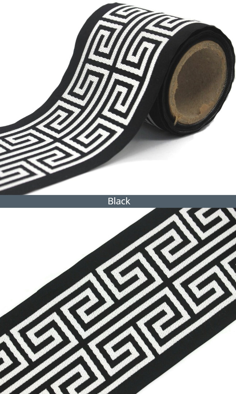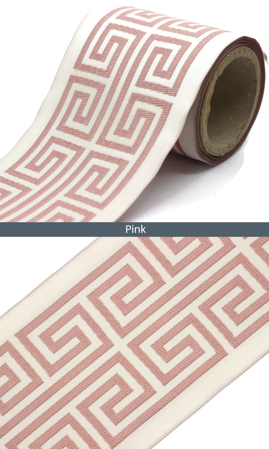 Dress up your custom curtains with an elegant ribbon trim from our 'Greek Key' collection of embroidered jacquard trims.