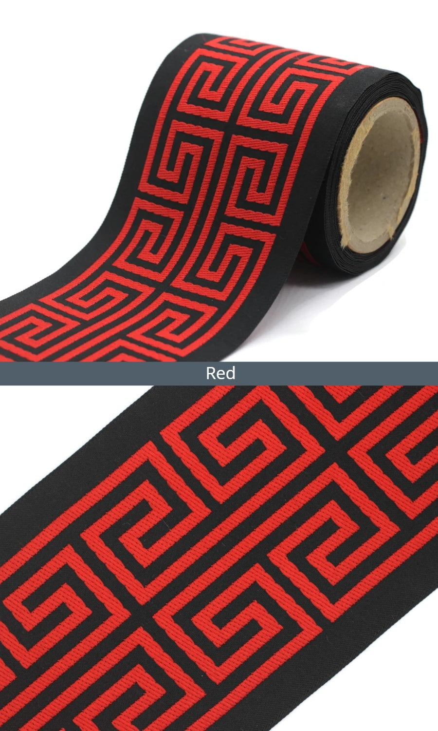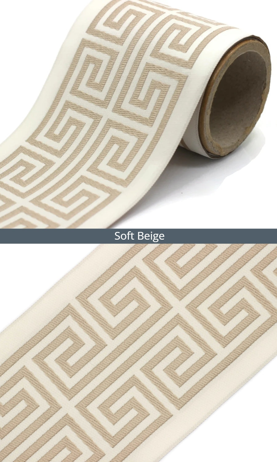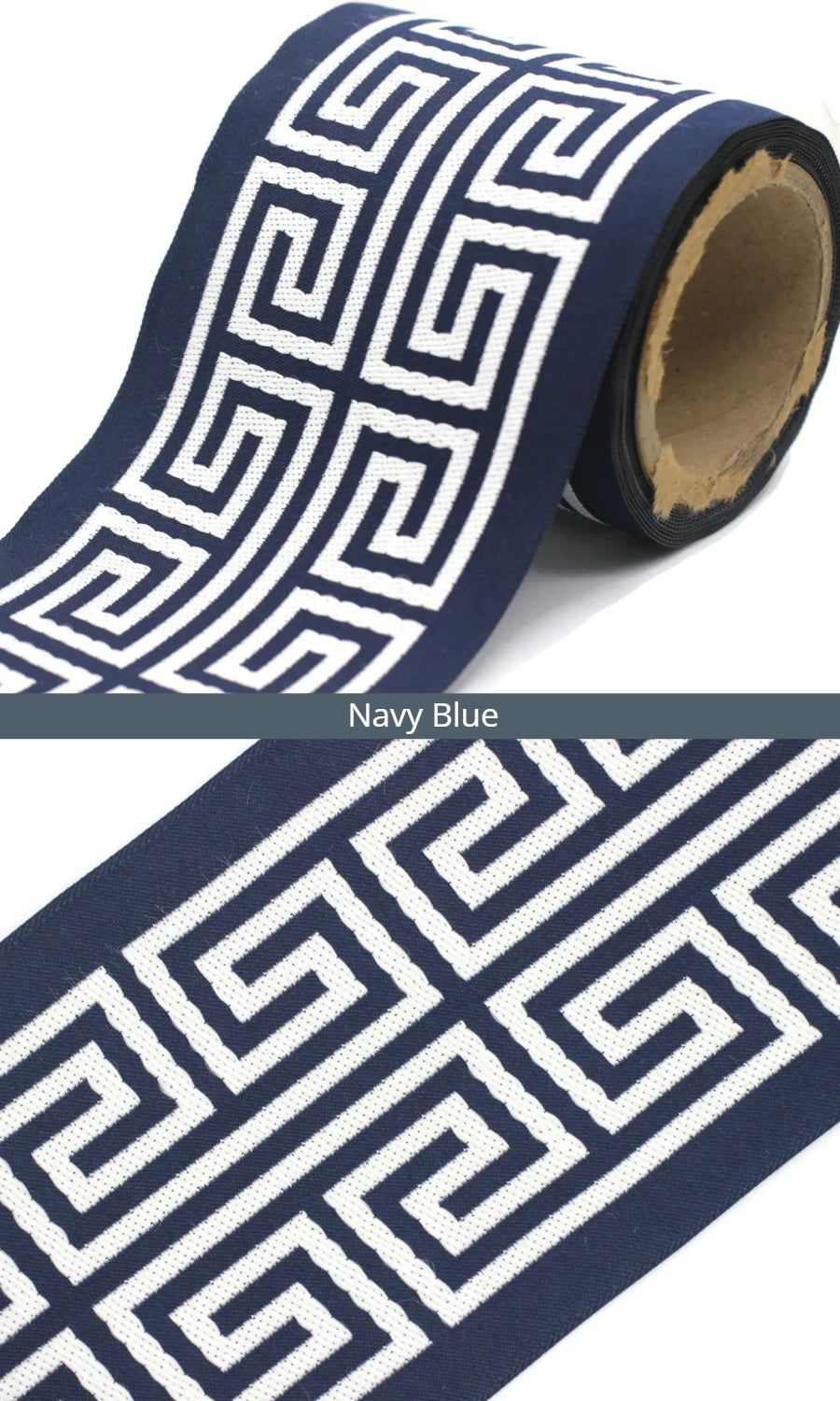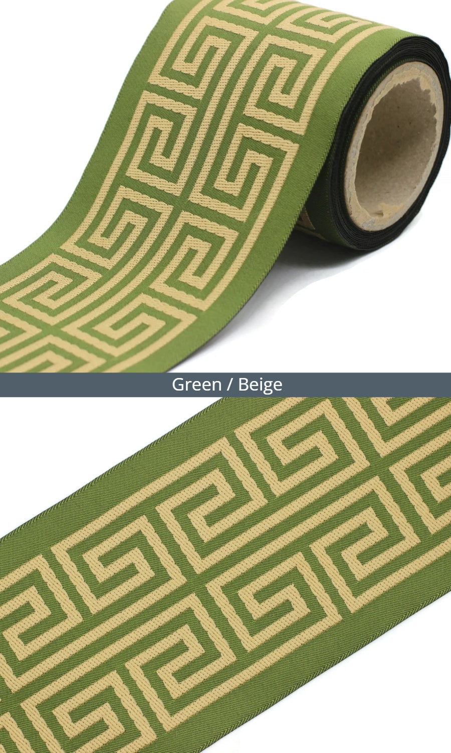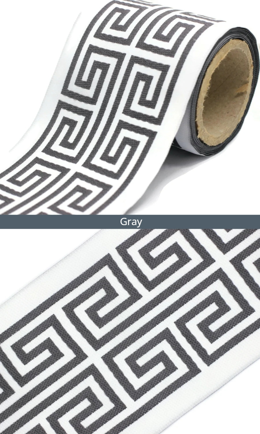 Dress up your custom curtains with an elegant ribbon trim from our 'Greek Key' collection of embroidered jacquard trims.