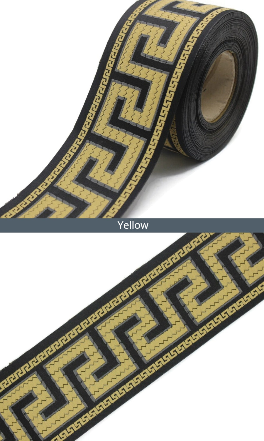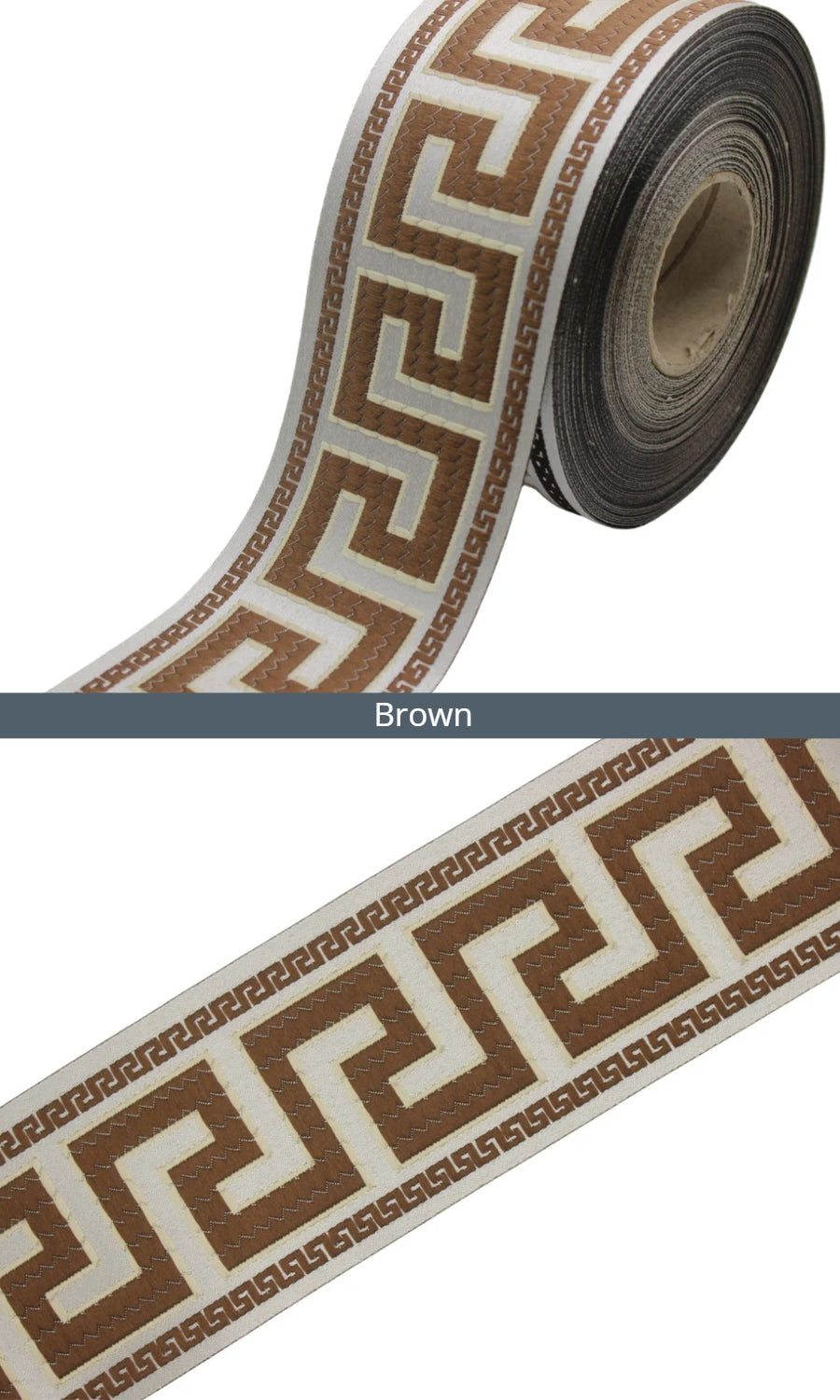 Dress up your custom curtains with an elegant ribbon trim from our 'Greek Key' collection of embroidered jacquard trims.