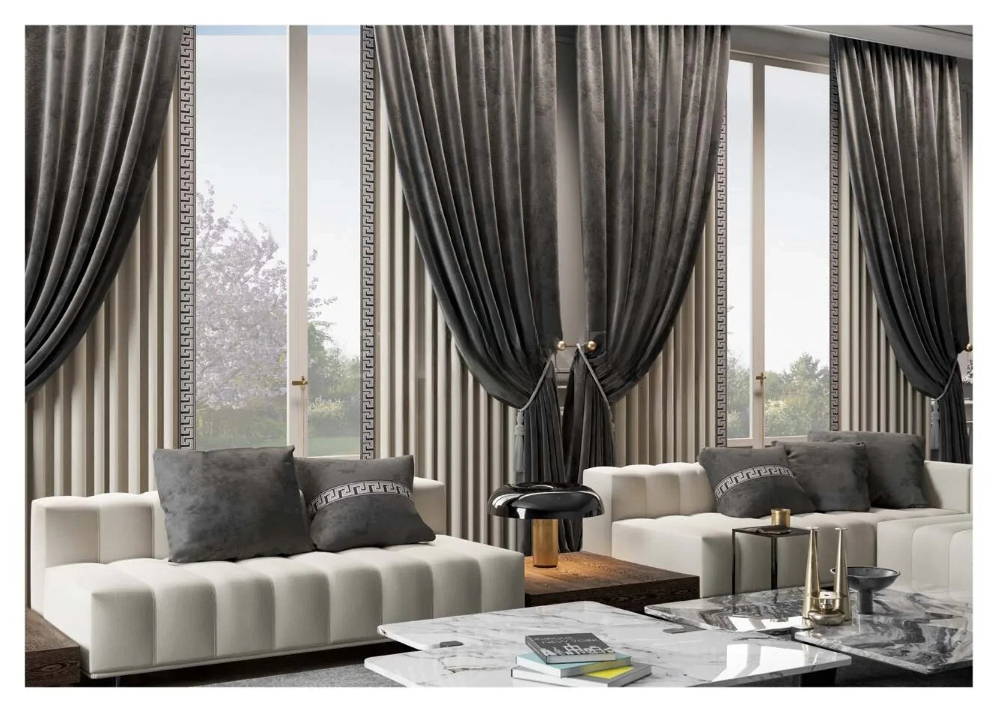 - Curtains/ Roman Shades with Trims: Some window dressings with trims *may* take up to six weeks as many of our trimmings are sourced from Turkey & London, thereby adding to our processing timeline in some instances.