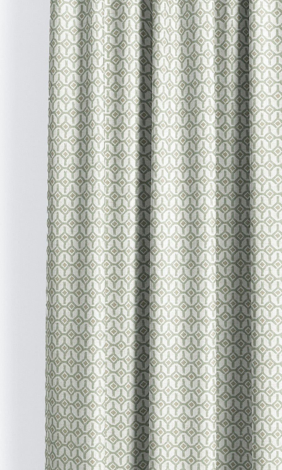 - Crown with a plain valance: Layer these drapes with a plain seafoam green valance to ground their intricate trellis pattern. This interplay of solids and prints brings depth and interest to the arrangement, and makes it feel more tailored and considered.