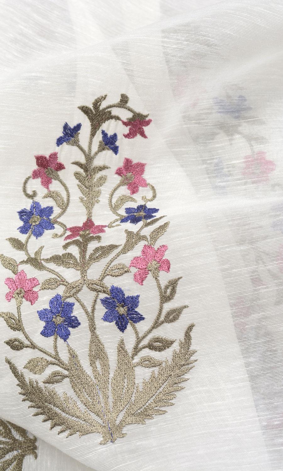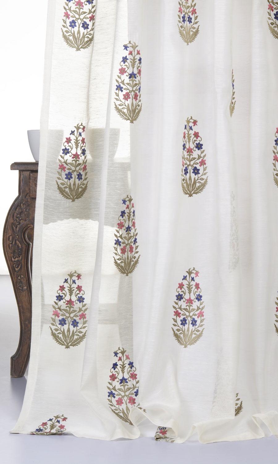 A showstopper paisley. Floral elegance in graceful colors and nimble embroidery merge with paisley to make a jaw-dropping feat. Heather Glen will veritably steal the show, not with fanfare and hullabaloo, but with a soft whisper, a gentle breeze, a silent gaze! Pair with solid pink drapery in a dreamy bedroom or let it shine alone on a sunny patio door - this diva will set the stage ablaze.