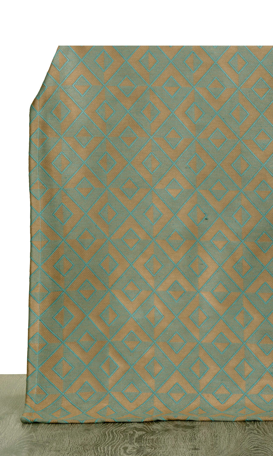 - Introduce curvy patterns: Balance the bold sharp-edged diamond design of this roman blind by adding small-scale curvy patterns in other decor items.