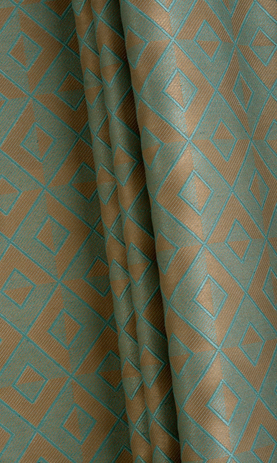 If you like geometric patterns but want more than simple checks, Helmond Pillar is a fair choice. This sturdy woven fabric has a charming diamond check pattern with color play that creates complex visual impressions reminiscent of mosaic tiles. The color palette is an elegant one with turquoise and deep beige. A sober choice that's high on aesthetics.