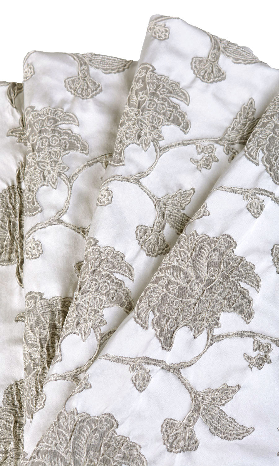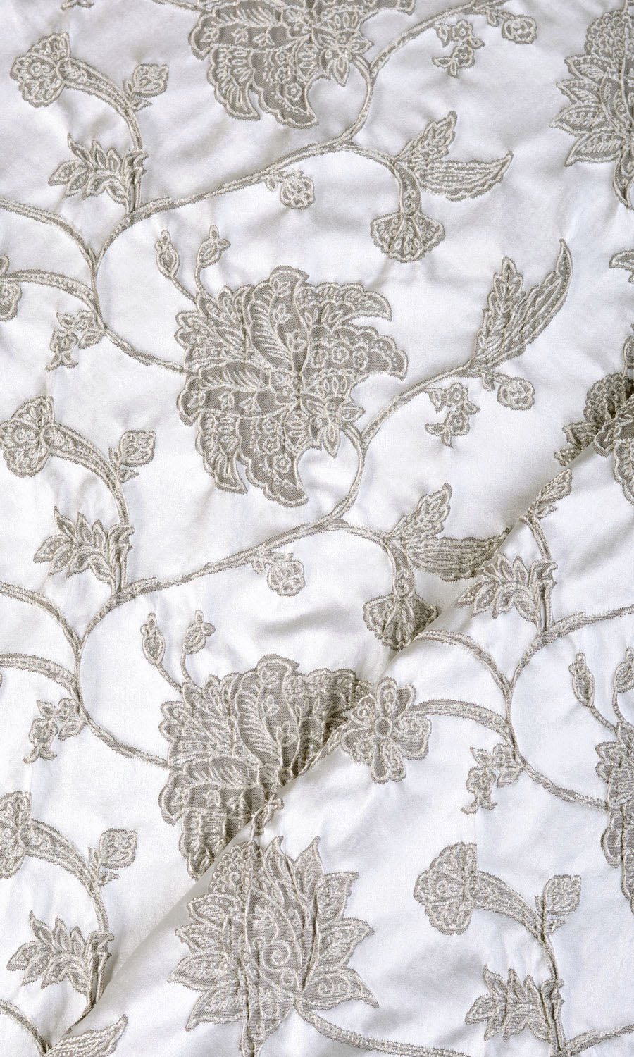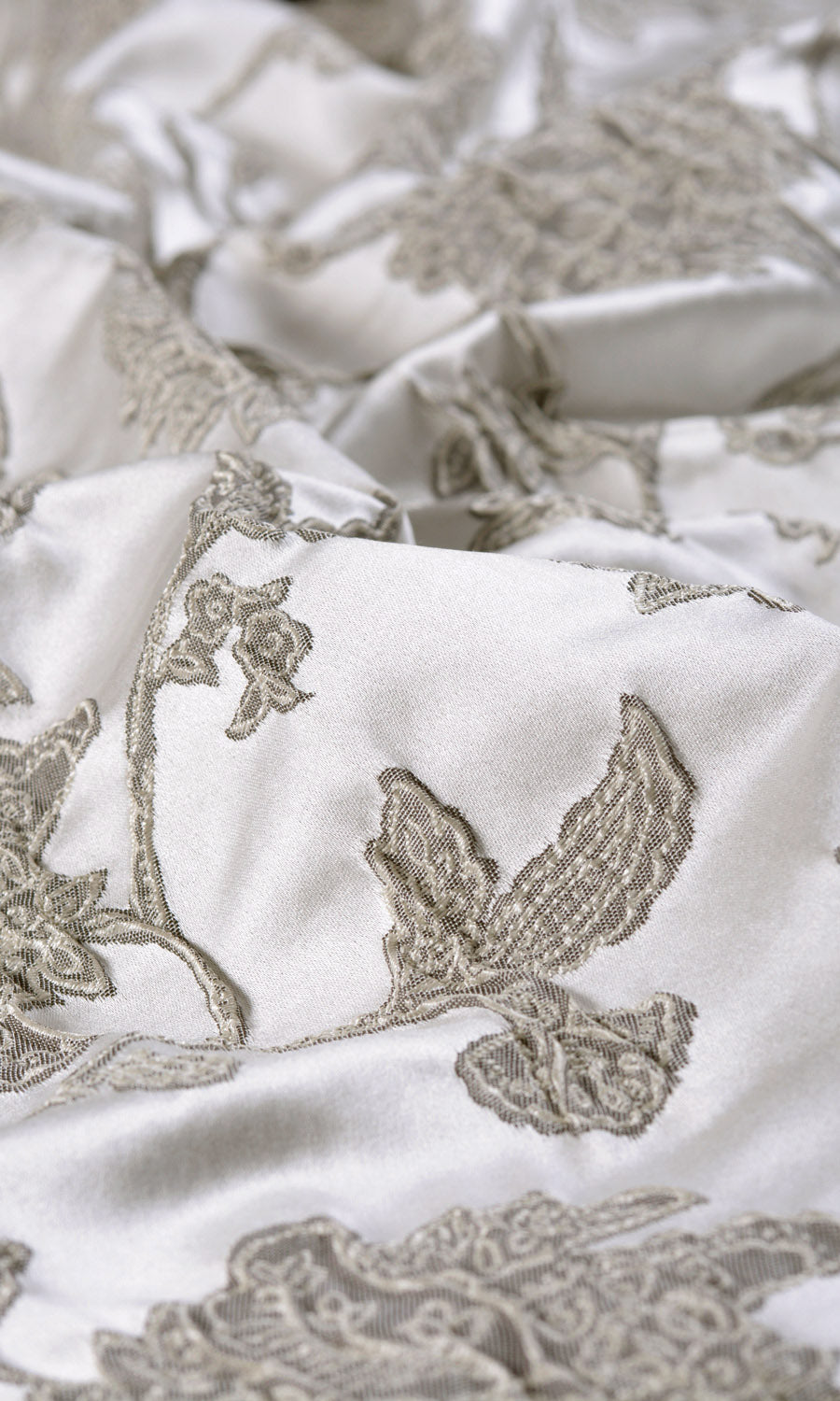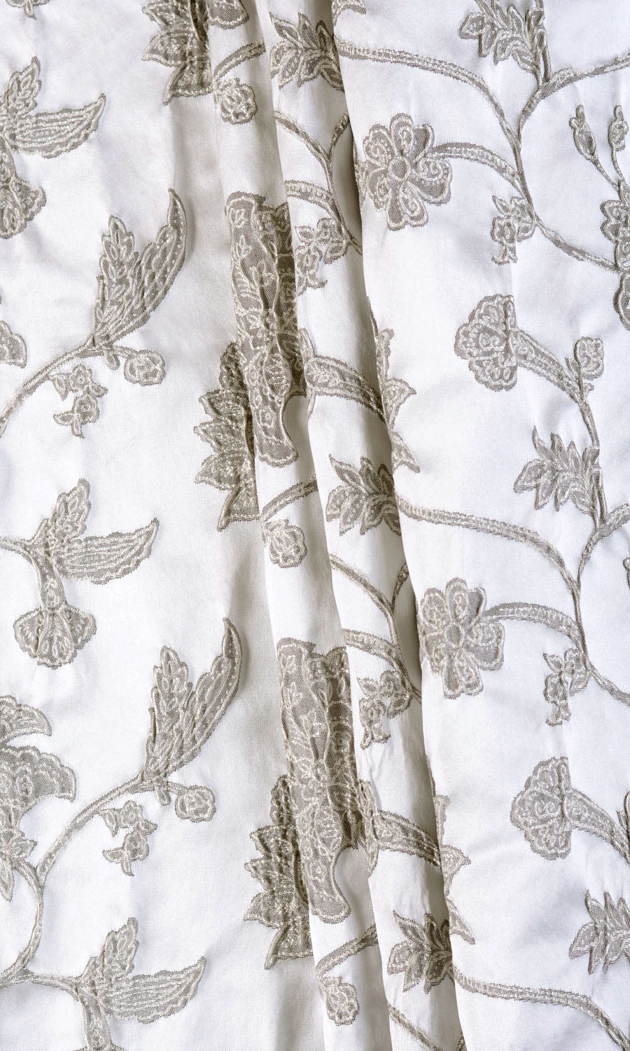 - Its grandiose floral patterns and creeping vines enriched by floral applique and raised texture