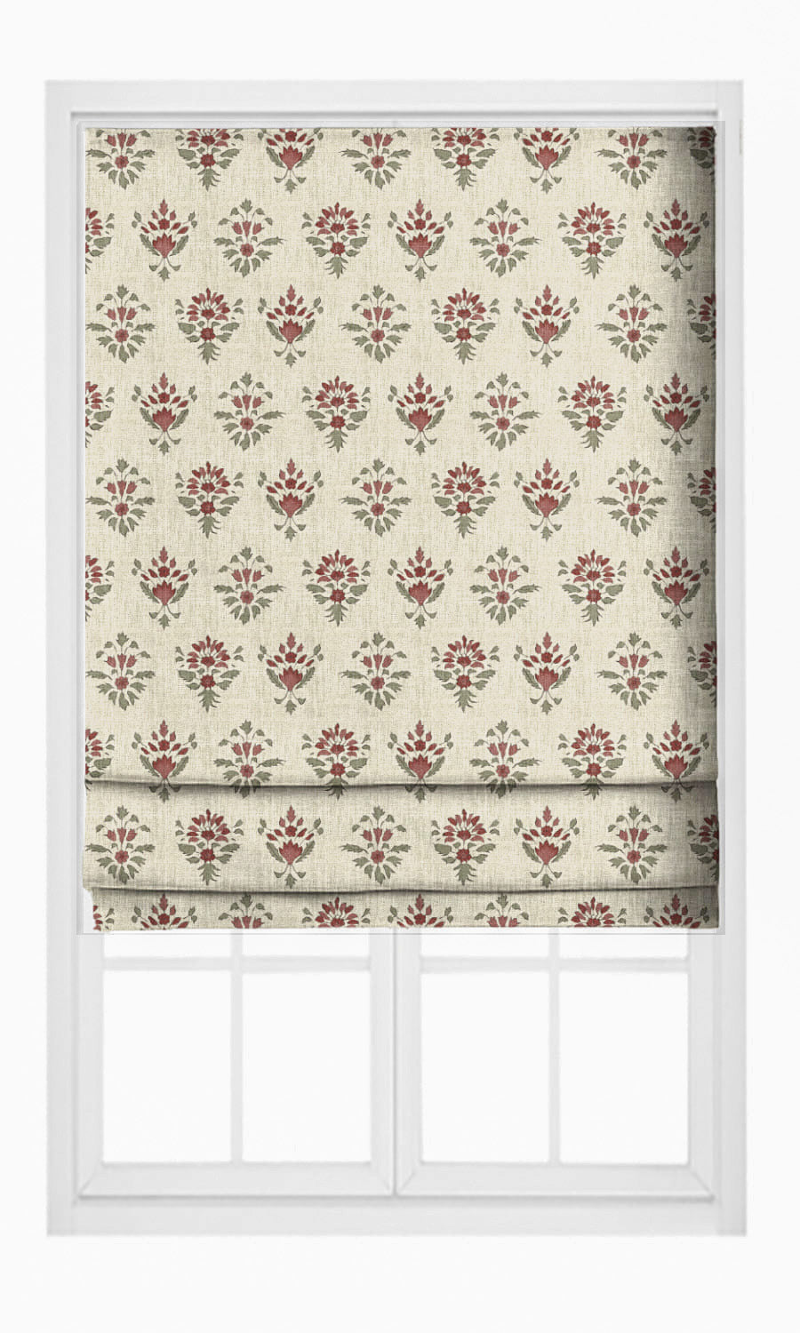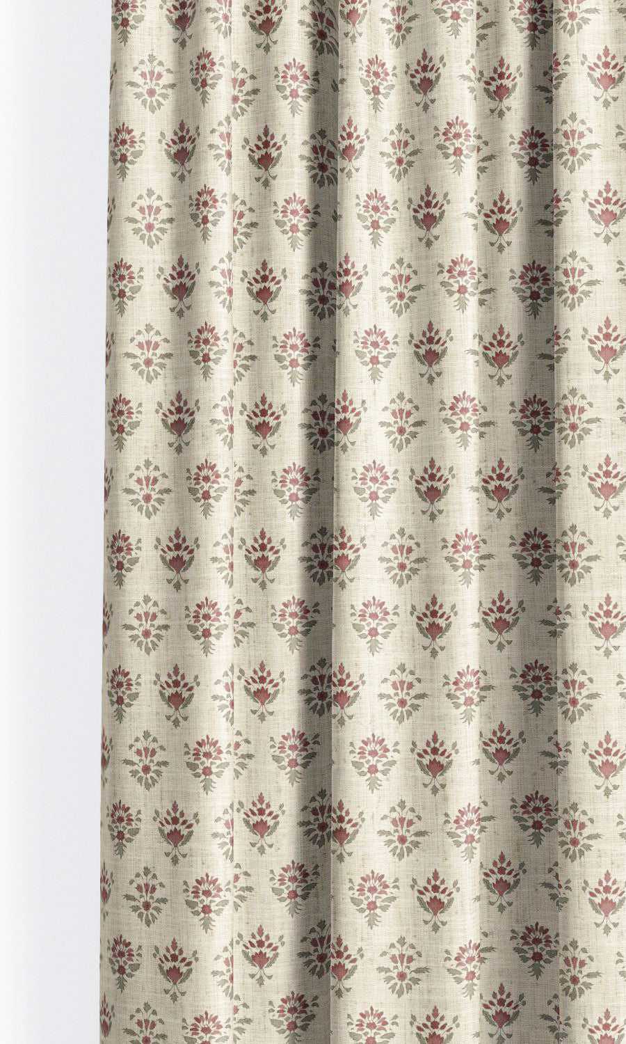 'Herring Rosary' Fabric by the Yard (Ivory-Beige/ Deep Red)