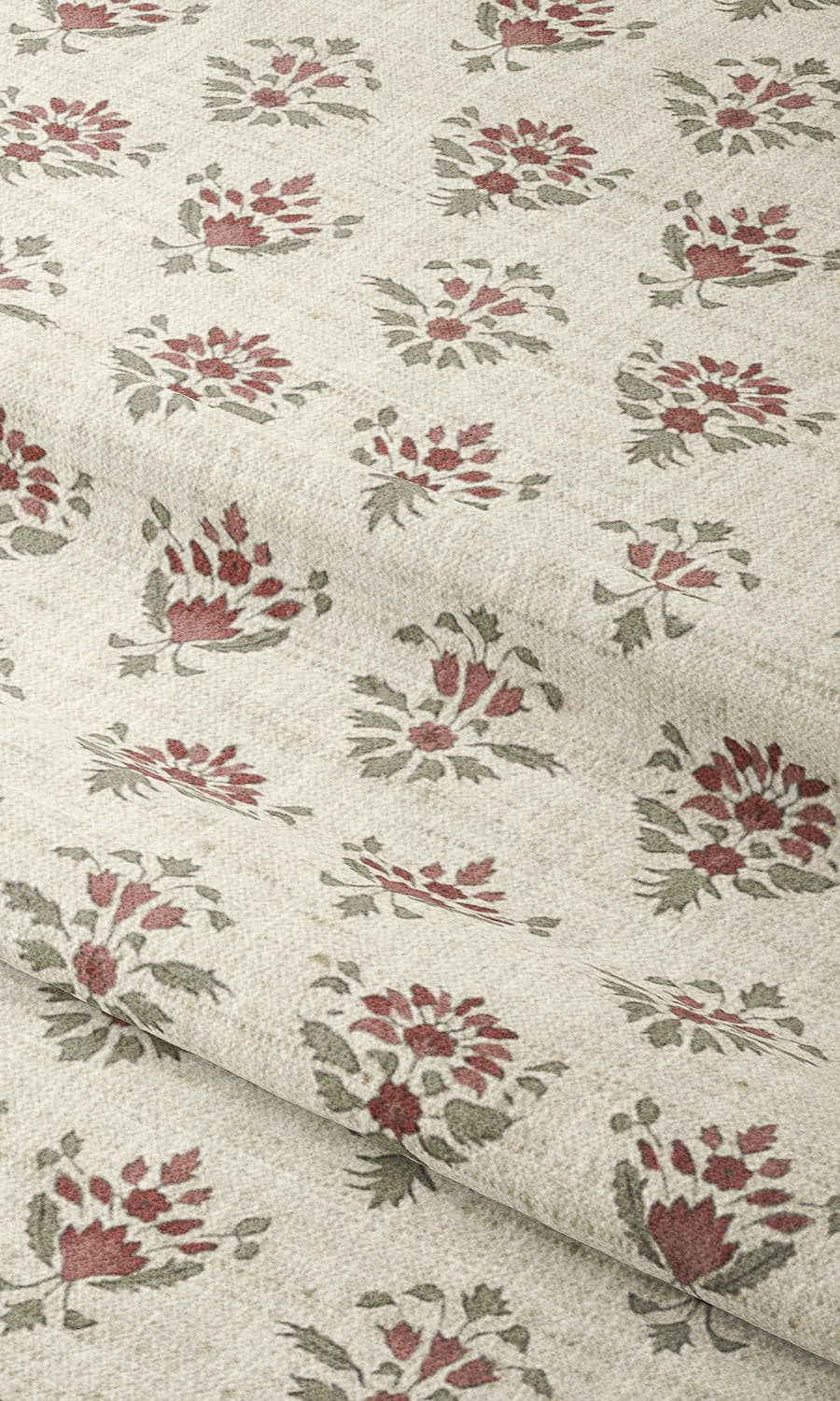 'Herring Rosary' Fabric Sample (Ivory-Beige/ Deep Red)