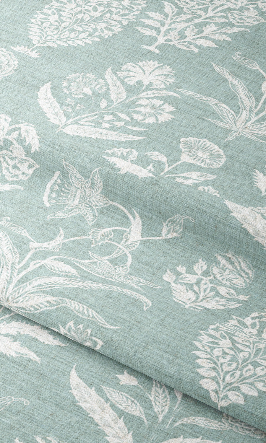 - Its garden of assorted block-print floral silhouettes, evoking the nostalgia of pressed blooms with timeless artisanal elegance