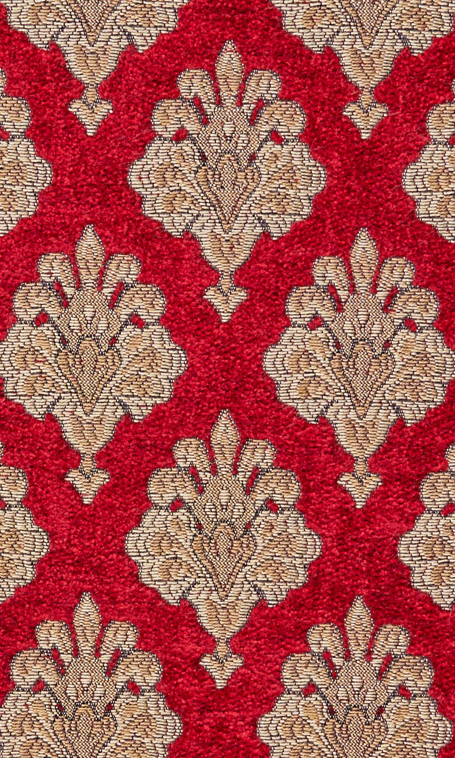 This magnificent jacquard fabric gives an unapologetically luxurious vibe. Its velvety ruby red backdrop features a vintage floral pattern in beige and brown. Alternate placement of floral motifs adds a gorgeous geometric illusion. Unbelievably majestic!