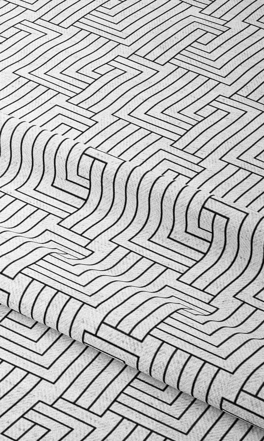 'Ivan' Maze Line Print Made-to-Measure Drapery (Black & White)
