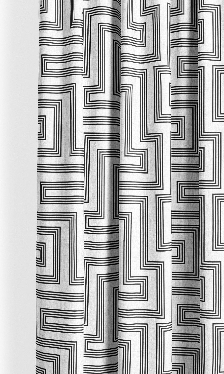 - Counterbalance vibrant colors: Use Jade Campus black and white curtains to offset the energy of saturated colors. While they lean into the drama of pattern, they keep the color story relaxed, lending a balance to the decor and allowing bold tones to shine.