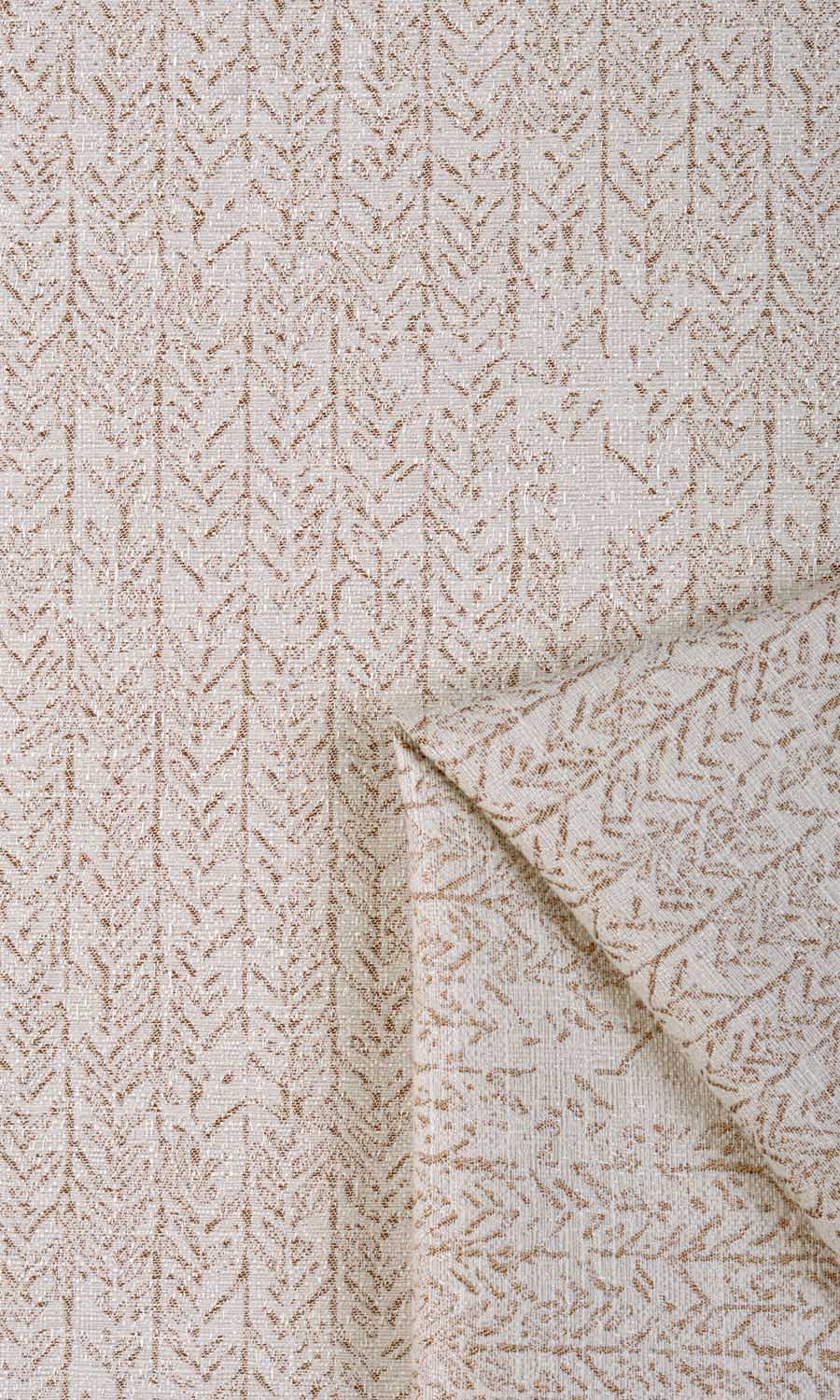 If your style spells serenity, Jarrah will soothe your senses for sure. This off white drapery fabric in sturdy poly-cotton is patterned with a part-geometric, part-impressionist chevron design in coffee brown. With an elegant, understated color palette, Jarrah gives a soothing and tranquil feel that's perfect for living rooms and bedrooms.