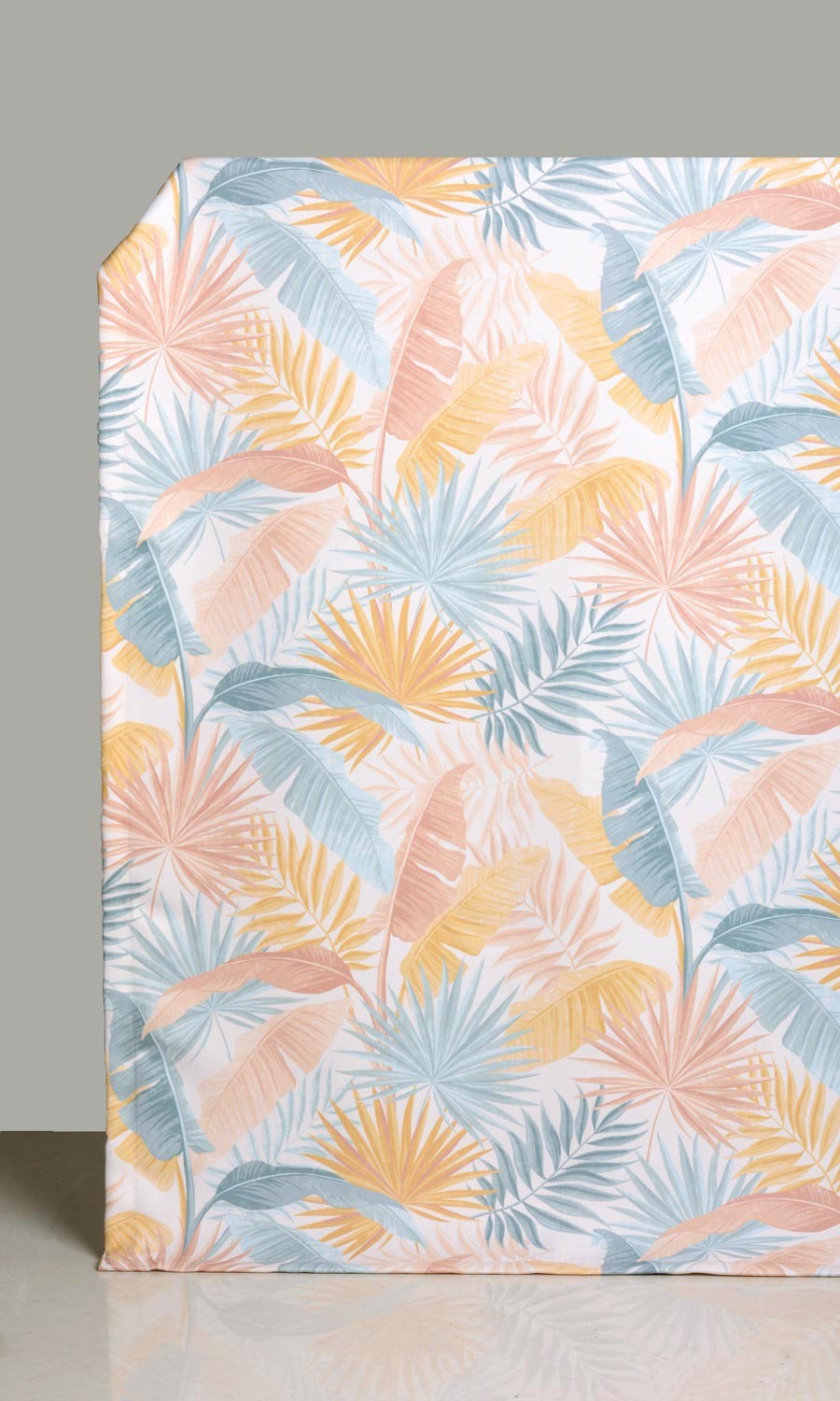 - The vibrance of its tropical leaves pattern evoking summer themes