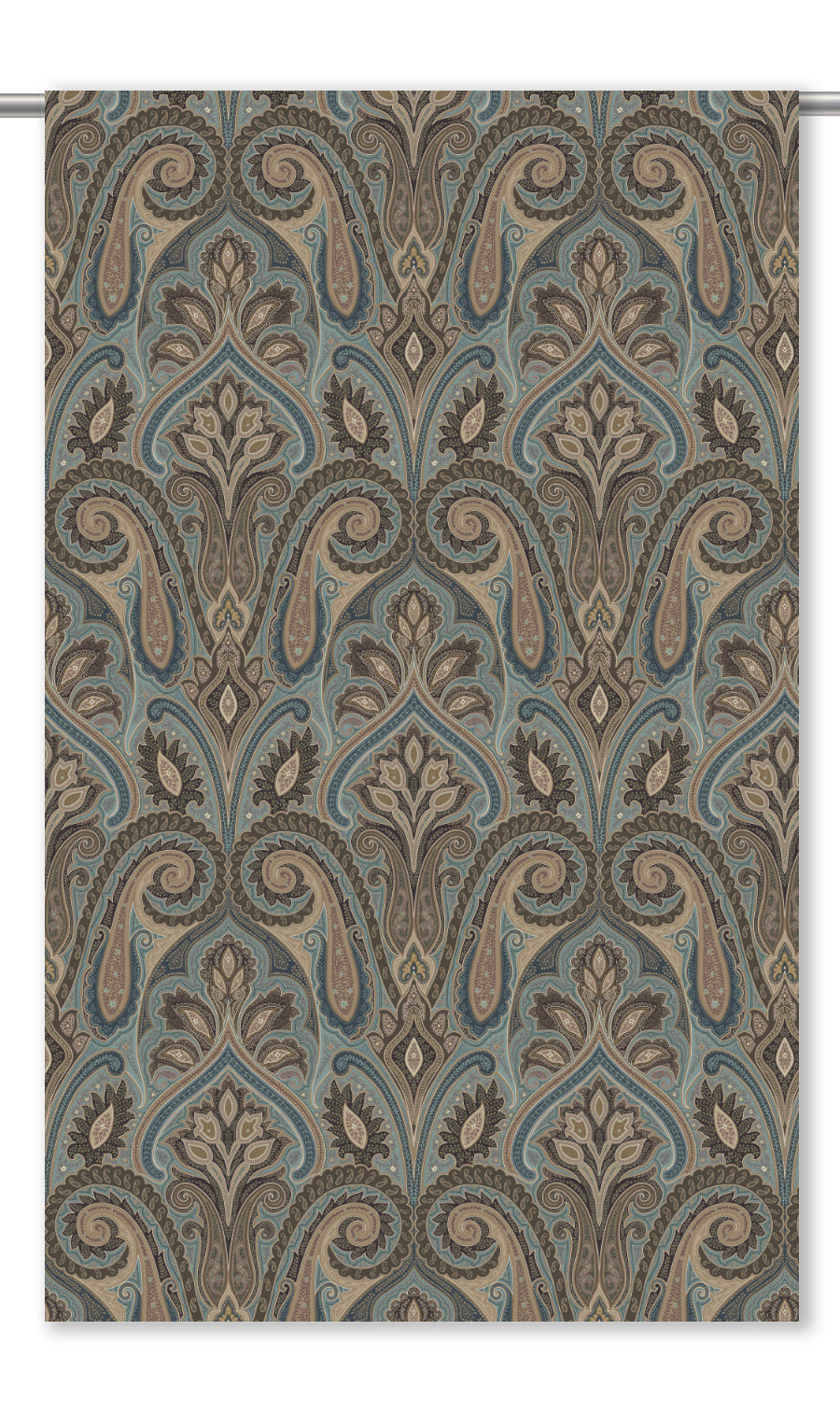 - Its regal fusion of damask and paisley where scrolling arabesques and teardrop whorls entwine in heritage elegance