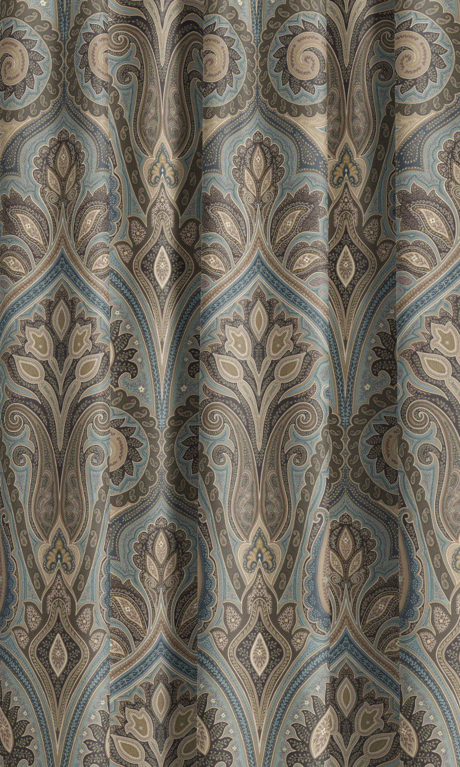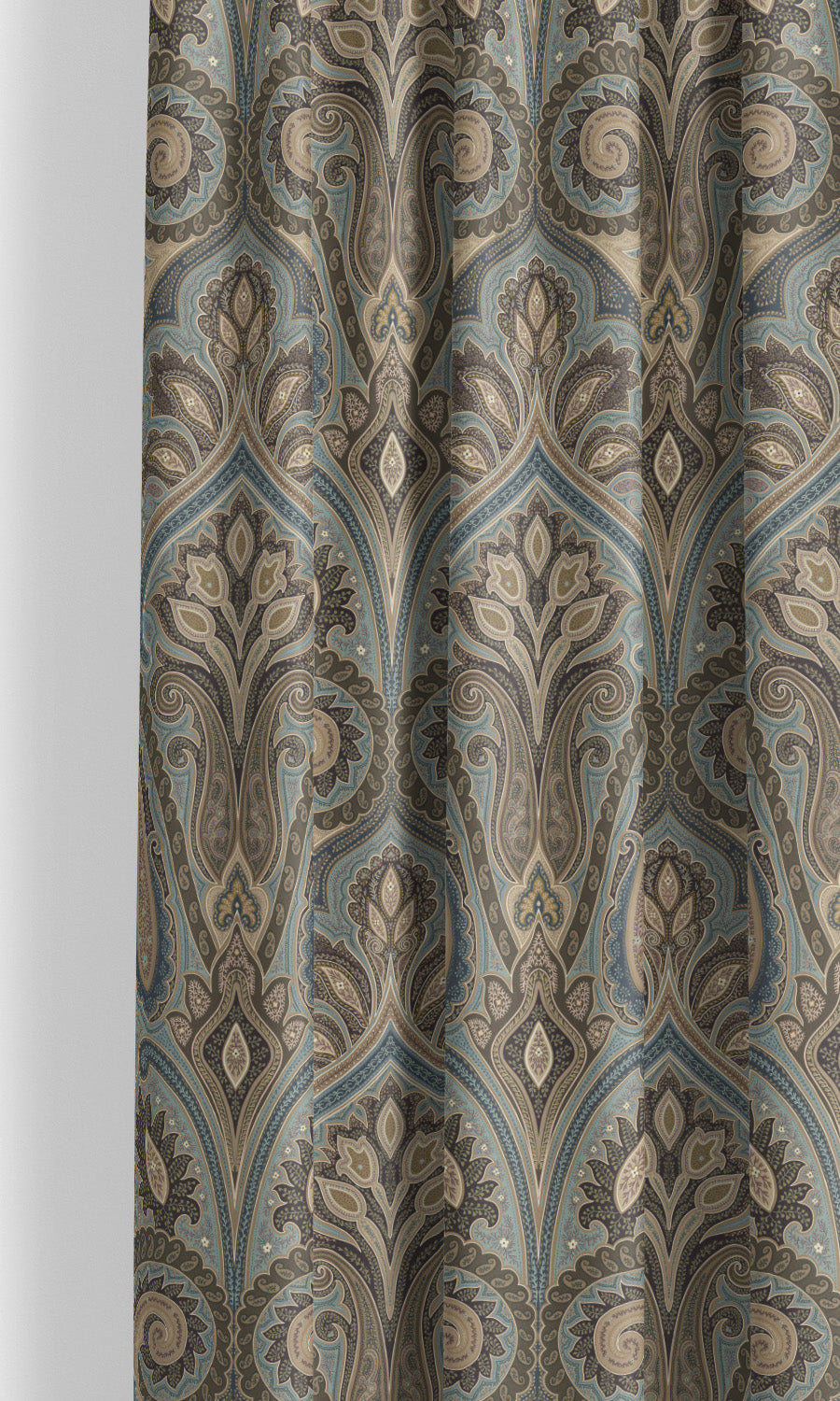 - Pair with traditional hardware: Elevate the regal appeal of these paisley damask velvet curtains with ornate brass or bronze hardware. Look for sculptural detailing and decorative touches that underscore the classical elegance of the motif and complement the drapery with the grandeur it deserves.