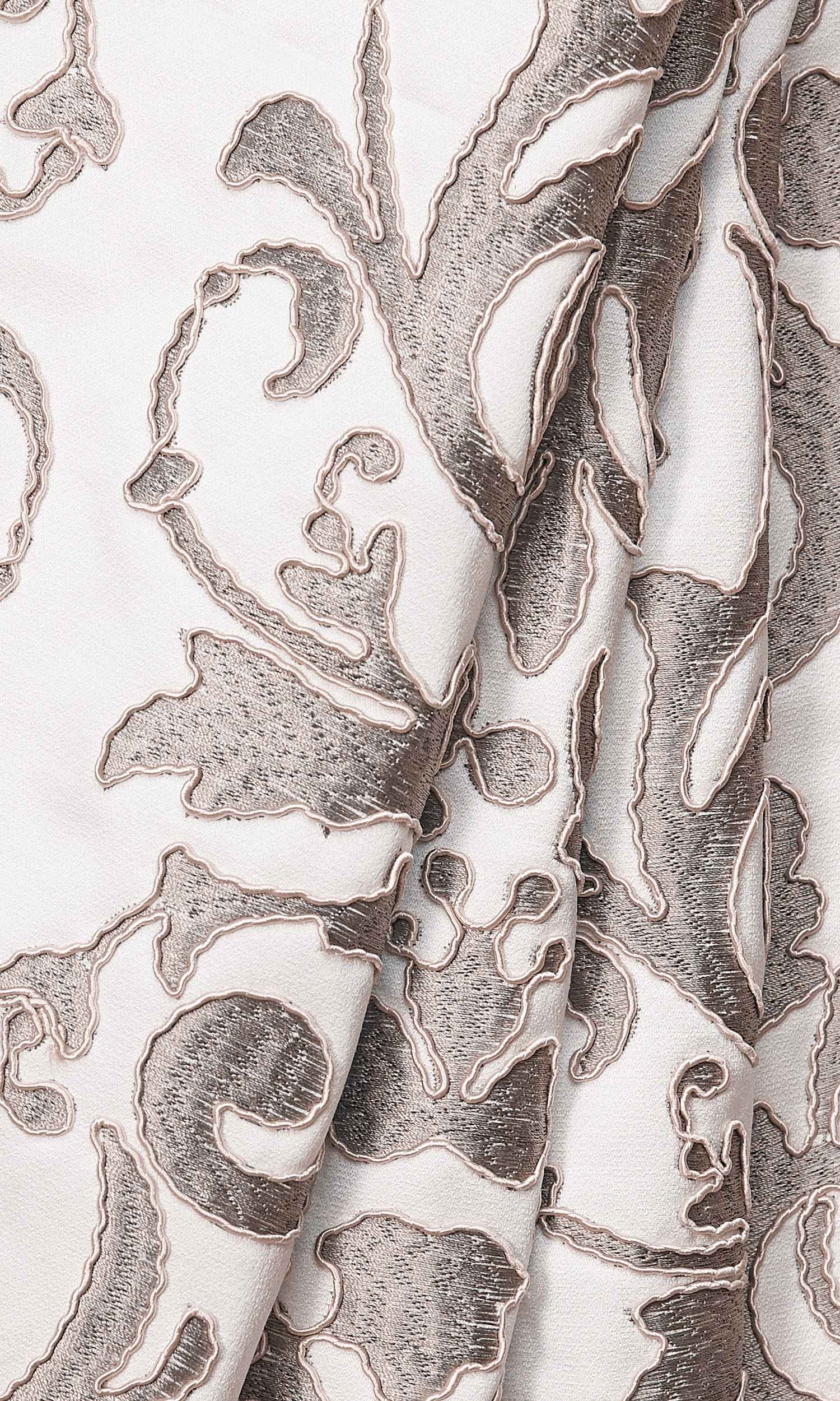 If your home design style runs to classic and sophisticated, check out this fabric that combines an ornate vine and tendril motif with a subtly understated color scheme of soft white and grey. The ultra gorgeous embroidered details have been further defined by raised edging effect.