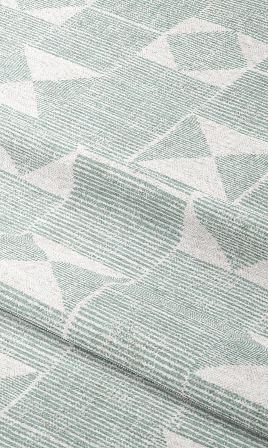 • Its seamless lattice of geometrics in a slightly washed-out finish, blending crisp geometry with lived-in ease