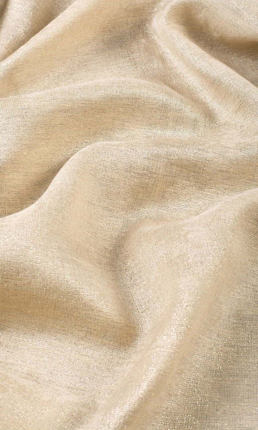 Golden mist! Regality and glamour blend in this gold-speckled golden-beige semi-sheer that paints the interiors with aureate luster, diffused light and gauzy texture. Let this diva add glamor to a formal living room, pizzazz to a Hollywood regency bedroom or echo the accents of a gold-tinged damask wallpaper in a traditional space.