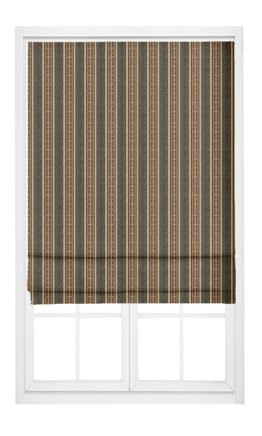 - Choose outside-mounting to accentuate window height: Outside-mount this striped roman shade a few inches above the window to elongate the window optically. This elevated position, coupled with the pattern's linear pattern, woos the eye upward, making the window appear longer than it is. Further, the shade completely clears the window when folded up as it stacks on the wall, instead of blocking the pane. Use this trick for your short windows where this amplified scale will benefit both functionally and aesthetically.