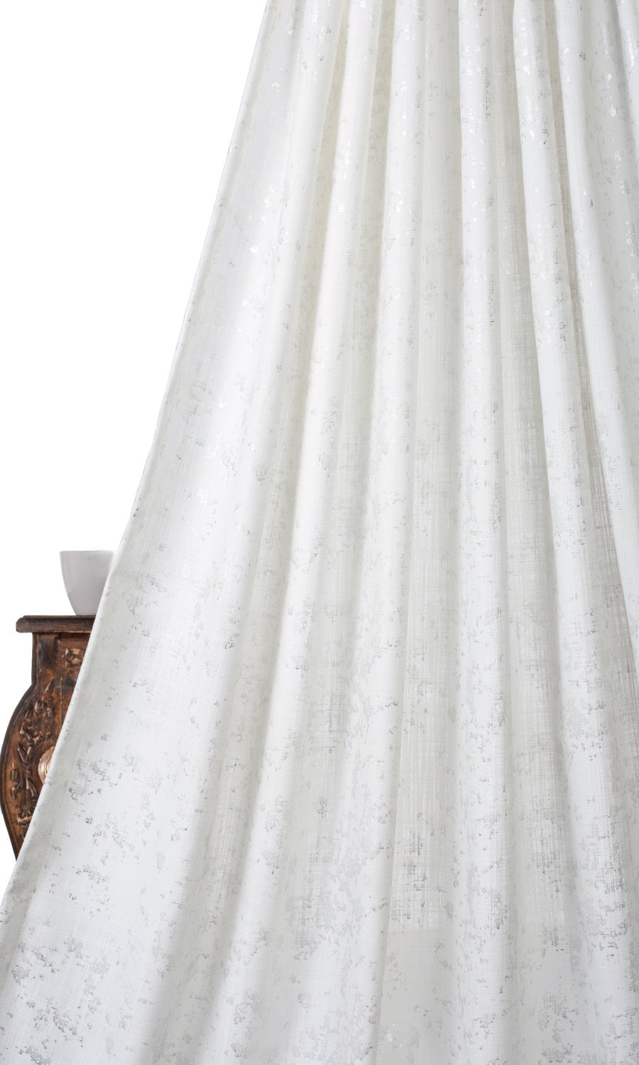 - Introduce oomph to a white room: Save an all-white room from going cold and sterile by adding these white curtains with shimmering silver accents for a subtle touch of oomph.