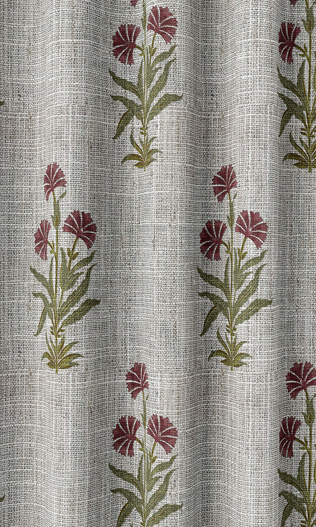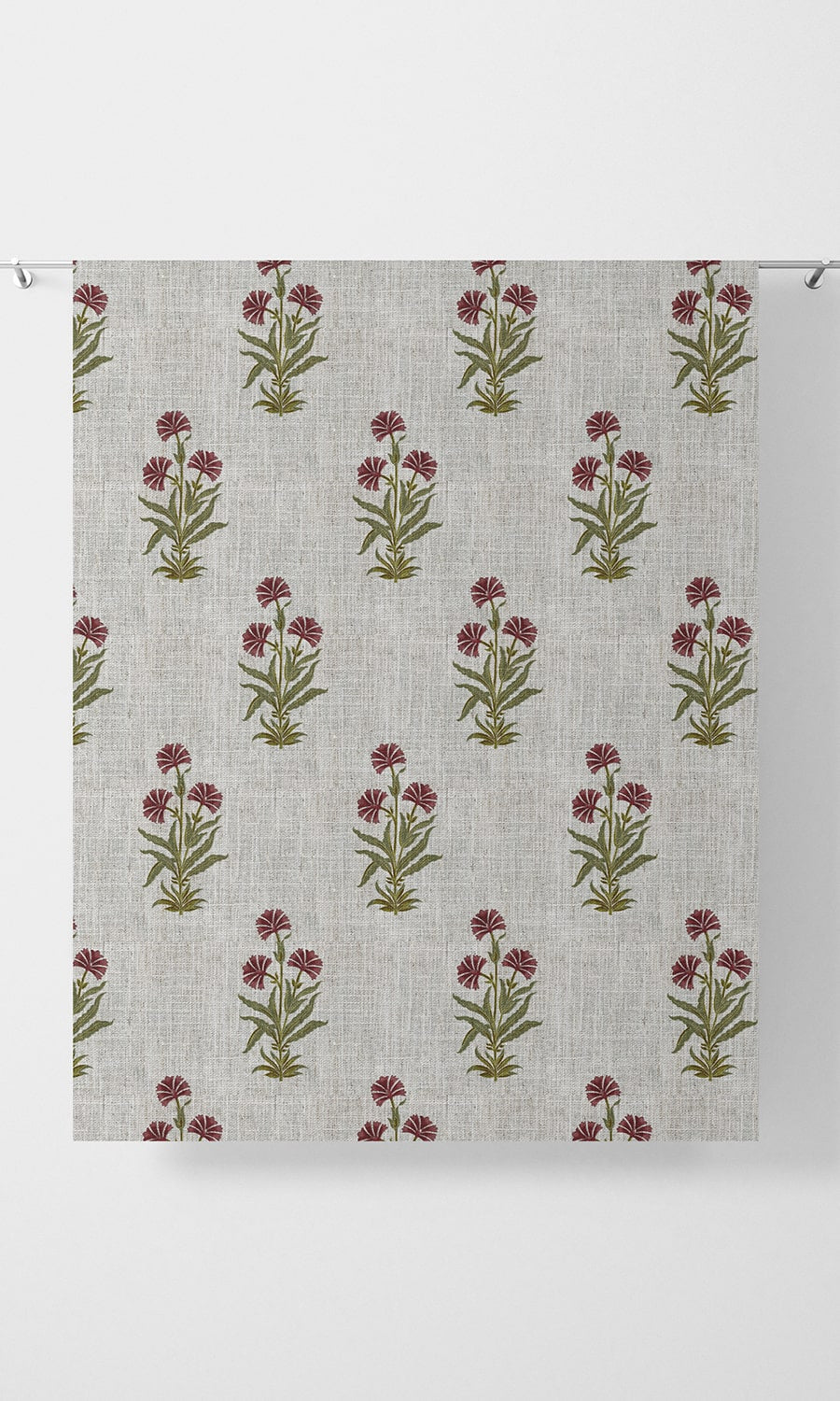 For the love of classic motifs and the sophistication of contemporary design trends, this fabric offers a delightful blend of both. A pale grey background featuring deep red narcissus flowers with green foliage offers a visual treat without going overboard. So welcome home an ancient Mughal floral motif in this modern pared-back color palette. Welcome home our lovely Lennox!