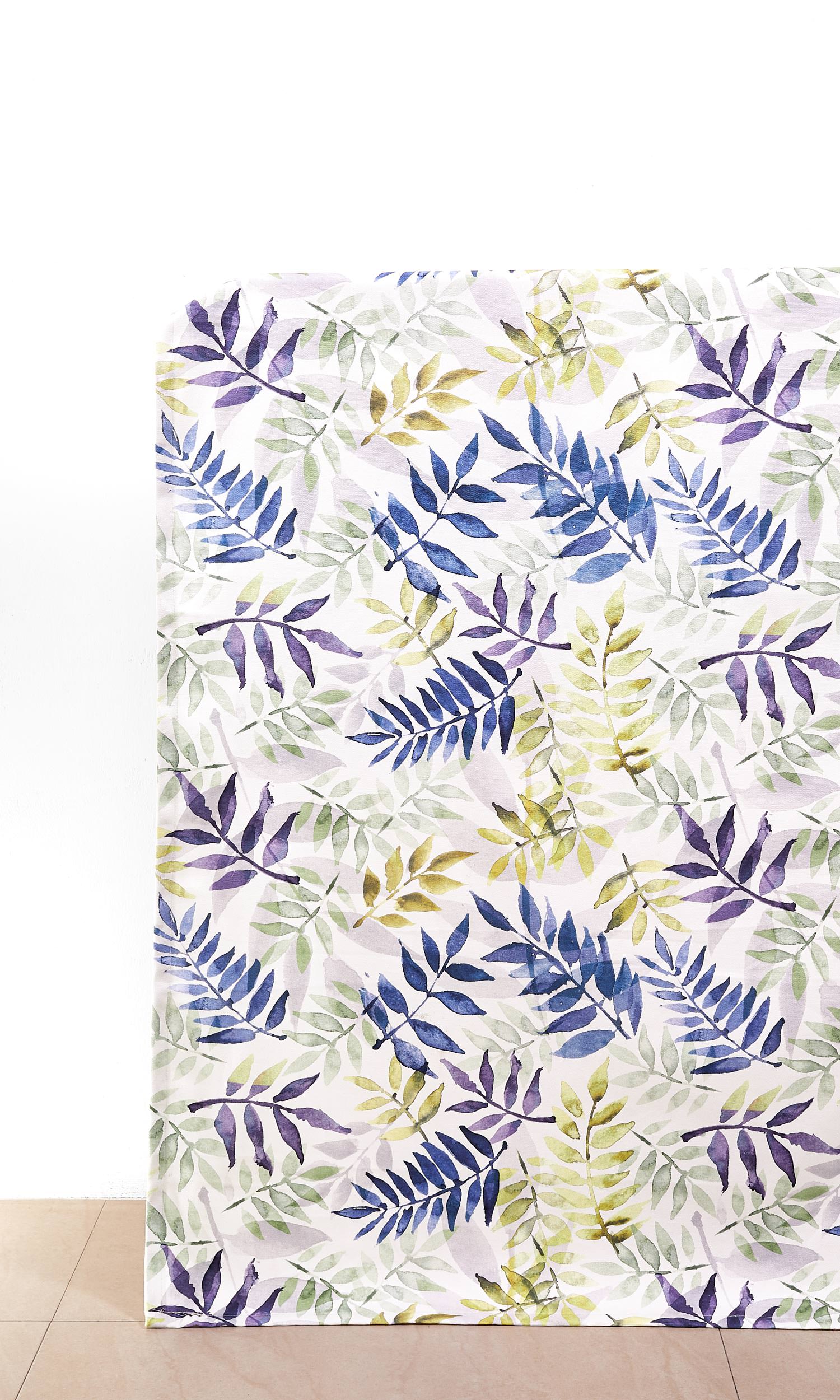 This flamboyant fabric is patterned all-over with a fabulous fern frond motif in shades of periwinkle purple, sapphire blue, pale gray, mint green and olive green. The overlapping and layered watercolor look combined with an eye-catching color palette is sure to be a conversation starter when you have company.