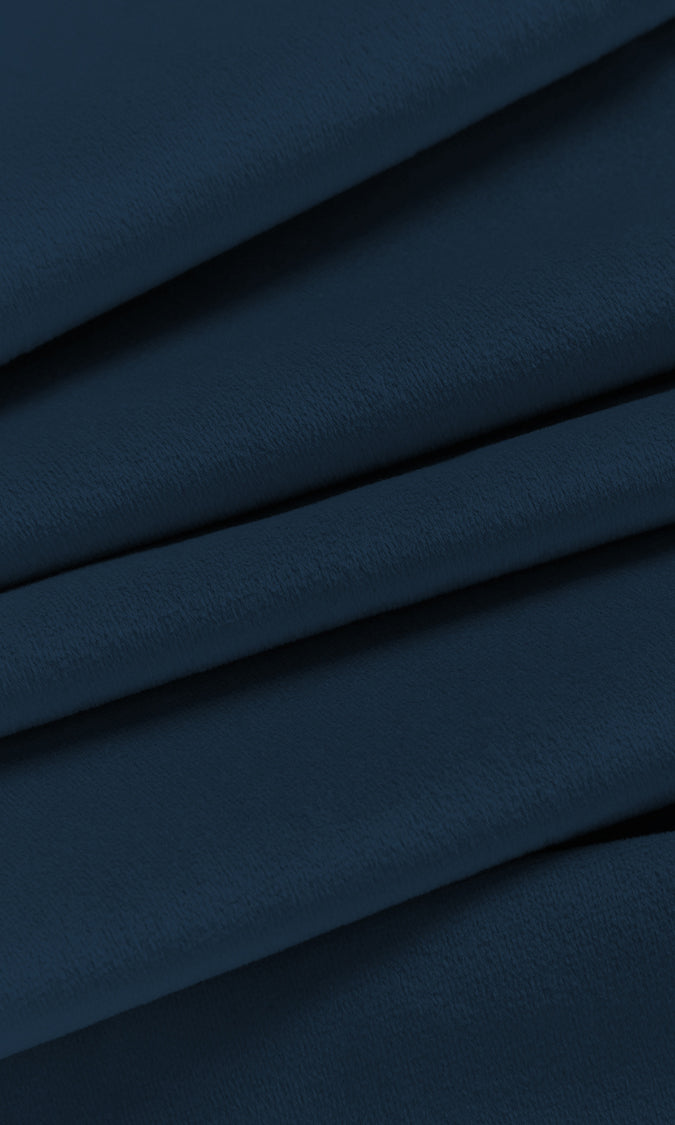 - Pick a decorative fold style: If 'Liberty Walk' roman blind is intended to fulfill an aesthetic purpose more than a functional one, consider the European relaxed fold style. Its scalloped bottom will give a nod to this sapphire blue velvet's opulence and plush texture.